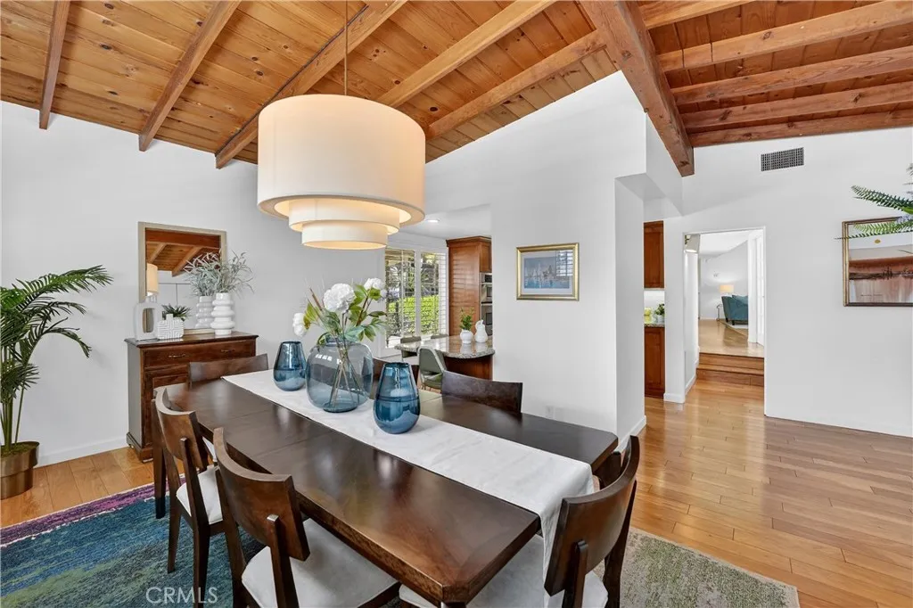 Mid-Century Modern Masterpiece! Set on nearly 30,000 square feet of flat, usable land across two parcels, 1372 and 1400 Puente Street present a rare opportunity to own an exceptional estate in the heart of Brea. Offering approximately 3,048 square feet of living space, this one-of-a-kind property features 4 bedrooms (including 2 primary ensuites), 3.5 bathrooms, and endless potential to create your dream estate with room for an additional home, ADU, pool, sport court, RV garage, guest house, or expansive entertaining grounds. The home’s timeless character is highlighted by vaulted and cathedral ceilings, exposed beams, large windows, plantation shutters, and preserved original 1950s design details blended beautifully with extensive modern upgrades throughout. Recent improvements include a new roof and fascia boards, newer HVAC systems and water heaters, copper plumbing, remodeled bathrooms, new interior paint, new Lutron switches and outlets, and new interior and exterior door hardware. A double-door entry opens to a spacious living room with vaulted ceilings, a dramatic fireplace with gas logs, and oversized windows that fill the home with natural light. The remodeled kitchen offers granite countertops, subway tile backsplash, custom cabinetry, stainless steel appliances, and a five-burner electric cooktop. Adjacent dining spaces feature beamed cathedral ceilings & a modern chandelier. The expansive family room offers recessed lighting and wood plank flooring. Upstairs, the primary suite features vaulted ceilings, track lighting, a private balcony, a generous walk-in closet area, and a beautifully updated bathroom with Art Deco-inspired tile and newer vanity and fixtures. A second primary suite provides flexibility for guests or multigenerational living Additional features include a spacious laundry room with built-in storage, updated secondary bathrooms with Kohler fixtures and designer finishes, and generously sized secondary bedrooms with ceiling fans and plantation shutters. The backyard is a true private retreat, featuring three separate patio areas, large grassy spaces, mature fruit trees including citrus, avocado and more, a workshop with storage, and room to expand or customize. The second parcel offers gated backyard access, RV parking, a two-car carport, and additional storage. This is a rare opportunity to own an iconic Mid-Century Modern property with character, land, versatility and future upside in one of Brea’s most desirable locations.