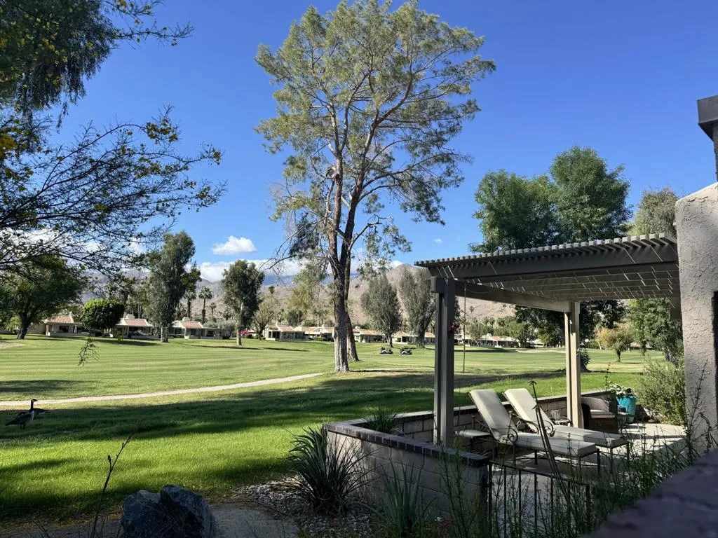 Beautifully Remodeled End-Unit Condo with Golf Course & Mountain ViewsLocated in the desirable Palm Springs / West Gate section of Cathedral Canyon Country Club, this beautifully remodeled end-unit condo offers style, privacy, and exceptional indoor-outdoor living.The spacious living room features a cozy fireplace and sliding glass doors that open to a serene patio with panoramic views. It flows seamlessly into the open dining area, with both spaces enhanced by vaulted ceilings that create a bright, airy feel.The upgraded kitchen is a standout, showcasing stainless steel appliances, abundant natural light, and a charming breakfast area surrounded by glass, with direct access to the rear patio--perfect for morning coffee or casual dining.An interior atrium adds architectural interest and brings natural light into the heart of the home, creating a unique indoor-outdoor ambiance.Outside, enjoy a spacious walled front courtyard and a private side yard with a tiled patio. The seller has expanded the rear patio (with HOA approval) and added an Alumawood cover, creating an ideal setting to relax and take in the stunning golf course and mountain views.Additional upgrades include:Newer windows and sliding glass doorsBeautifully updated bathrooms with modern showersThis home combines thoughtful upgrades, prime location, and effortless desert living--ideal as a full-time residence or seasonal retreat.
