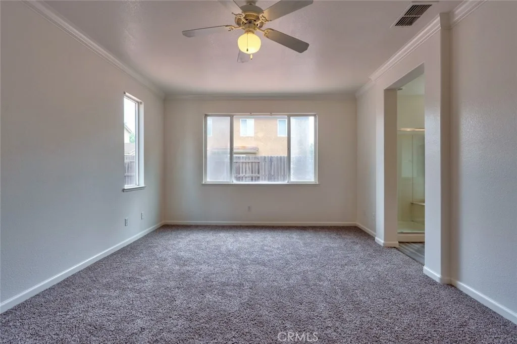 Located at the end of an oversized cul-de-sac in desirable North Merced, this well-maintained home offers both comfort and functionality. Featuring three bedrooms and two full bathrooms, the layout includes a separate living room and a spacious family room with a cozy fireplace—ideal for both relaxing and entertaining. The kitchen is designed with everyday living in mind, offering granite countertops, a breakfast bar, stainless steel appliances, and space for a dining table. Ceiling fans are thoughtfully placed in the family room and all bedrooms for added comfort. The home features carpet throughout, with durable tile flooring in high-traffic and wet areas. The primary suite provides a private retreat with dual sinks, a walk-in closet, and a separate soaking tub and shower. Additional highlights include generous hallway storage and large closets throughout. Step outside to a spacious backyard with ample room to design your dream outdoor space—whether that’s a pool, garden, or entertaining area. The expansive lot also offers excellent potential for an ADU (Accessory Dwelling Unit)—ideal for multigenerational living, rental income, or a private guest space (buyer to verify with local planning/zoning). A three-car garage and dedicated RV parking complete this impressive property. This home combines location, space, and versatility—ready for its next owner to make it their own.
