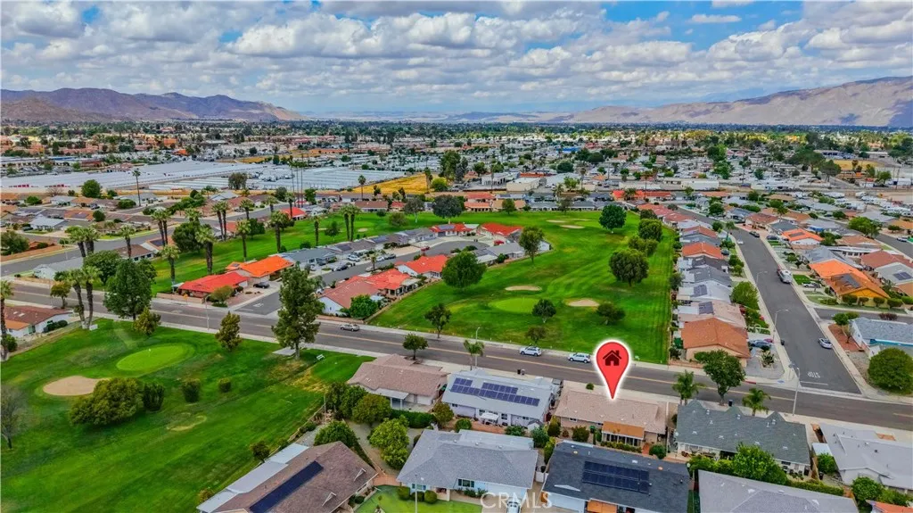 Welcome to desirable 55+ Panorama Village in Hemet, a vibrant golf course community known for its 9-hole golf course, beautifully remodeled clubhouse with kitchen area, and wonderful amenities including a saltwater pool, 3 indoor jacuzzis, billiard room, library, indoor pickleball and shuffleboard courts, dog park, and RV parking access. This beautifully remodeled home offers comfort, style, and golf course views. Inside, you’ll find wood flooring in the main living areas, carpet in the bedrooms, and thoughtful upgrades throughout. The spacious primary bathroom features marble flooring, marble countertops, and a porcelain tub/shower. The hall bathroom has been updated with a stand-alone shower and upgraded vanity. The remodeled kitchen is a standout with quartz countertops, self-closing drawers, stainless steel appliances, a farmhouse sink, and recessed lighting. Additional features include dual-pane windows, a dual-pane sliding glass door leading to the sunroom, newer blinds, ceiling fans, rain gutters, a roll-up garage door, covered porch, and a newer roof approximately 4 years old. Enjoy peaceful golf course views and all the benefits of resort-style senior living in this move-in ready home.