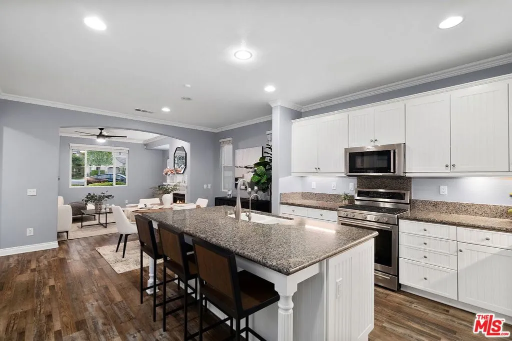 Experience life on the coveted inner rim of the highly sought-after Harveston Cottage community in Temecula, just steps from its picturesque 17-acre lake. Here, charm and convenience come together, offering the perfect setting for serene morning jogs along the water's edge or peaceful strolls with your dog in a beautifully scenic environment. Harveston offers an exceptional array of amenities, including a 19+ acre sports park featuring two baseball fields and two football/soccer fields, as well as scenic walking and biking trails throughout the neighborhood. The community also boasts a Junior Olympic-sized pool, relaxing spa, and a family-friendly splash pad complete with shaded seating perfect for unwinding while children play. Inside the home, you'll find a beautifully appointed kitchen with granite countertops, white shaker cabinetry, and stainless steel appliances. Durable vinyl flooring extends throughout, adding both style and practicality. This is a home that truly must be experienced in person to be fully appreciated.