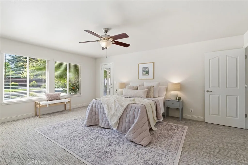 Nestled in an amazing neighborhood, this standout property offers the perfect combination of community charm and modern comfort. Designed with multigenerational living in mind, this one-of-a-kind home features two spacious primary bedrooms, each with double sinks in the en-suite bathrooms, along with two living rooms and a dedicated dining area that create the perfect balance of connection and privacy. Step outside to your own private retreat, complete with a sparkling pool, garden area, and a variety of fruit trees including avocado and table grapes, all contributing to a peaceful, park-like setting ideal for relaxing or entertaining. Inside, the home is packed with upgrades and thoughtful features. Enjoy year-round comfort with two HVAC systems, two whole house fans, and a mini split in the second primary bedroom. The finished attic, complete with heating and cooling, adds flexible living space, while owned solar enhances energy efficiency. Additional highlights include an electric stove and oven, two hot water heaters, a plumbed whole house vacuum system, and a wired camera system for added convenience and security. The property also offers a workshop and a spacious three-car garage, providing ample room for hobbies, storage, and projects. Modern touches like a Rainbird irrigation system controlled by an app further elevate everyday living. Located in a friendly, highly desirable neighborhood where the entire loop measures exactly one mile, you’ll love the sense of community. This home truly has it all! Space, versatility, upgrades, and an unbeatable setting. Don’t miss your opportunity to make it yours!