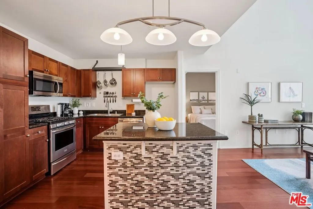 Top-floor 2BR + loft at Savoy in the heart of Little Tokyo in one of Downtown LA's most vibrant and evolving neighborhoods, now buzzing with energy at near pre-pandemic levels. This highly sought-after lofted floor plan offers dramatic volume with soaring ceilings and expansive windows that bring in beautiful natural light and open views of blue skies above. The open-concept living, dining, and kitchen layout flows effortlessly, anchored by rich wood flooring. The kitchen boasts a breakfast island, granite counters, stainless steel appliances, and a newer stove and dishwasher. The versatile loft space is ideal for a home office, guest area, or creative studio. The primary bedroom offers a quiet retreat, while the second bedroom provides flexibility for guests or additional workspace. Additional upgrades include a newer HVAC system (replaced in 2022, approx. $10K). Two parking spaces are included, equipped with an EV charger, an exceptional convenience. Savoy is known for its lush landscaped courtyards and resort-style amenities including pool, spa, fitness center, screening room, business center, rooftop deck, and 24-hour attended lobby with guest parking. Just moments from Little Tokyo's best dining, cafes, markets, and cultural landmarks, with easy access to the Arts District and major transit lines. A rare opportunity to own one of the most desirable layouts in a prime Downtown location.