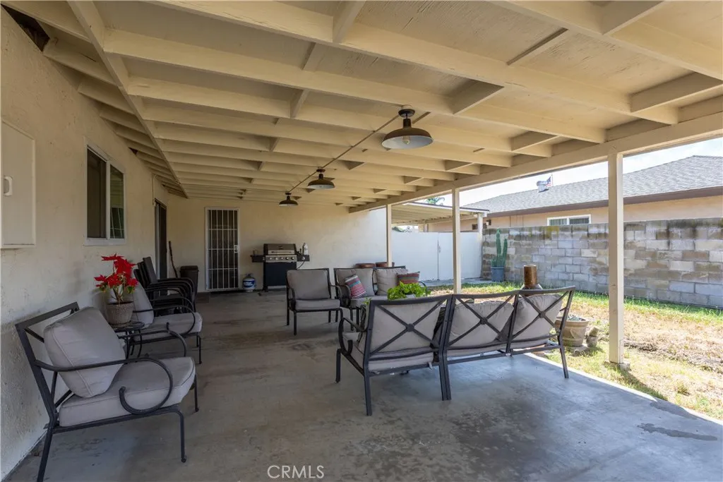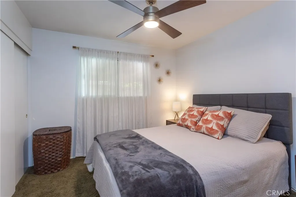 This beautiful home offers a wonderful blend of comfort, functionality, and thoughtful upgrades throughout. As you enter, you’re welcomed into a spacious family room highlighted by a large front-facing window, creating a warm and inviting atmosphere. The kitchen has been tastefully remodeled and features stainless steel appliances, ample cabinetry, generous counter space, and a seamless connection to the dining area, perfect for both everyday living and entertaining. Just off the family room is a versatile fourth bedroom (per title) with a closet, currently opened to the living space, making it ideal as a home office, den, or easily convertible back to a private bedroom. The primary bedroom suite is well-sized and offers direct access to a private side yard through a sliding glass door, along with its own en-suite bathroom. Additional features include indoor laundry, updated bathrooms with new toilets, and dual-pane windows throughout the home for added comfort and efficiency. All bedrooms are finished with carpeting, and the home is equipped with a solar attic vent to help regulate temperature, as well as a water filtration system in the kitchen for clean drinking water. Stylish light fixtures and ceiling fans add to the home’s overall charm and functionality. Step outside to a backyard designed for gatherings, complete with a covered patio and built-in lighting, perfect for relaxing or entertaining. The property also offers RV parking, gated side access for additional parking, and a large storage shed for added convenience. This home truly offers a flexible layout and thoughtful features to meet a variety of needs.
