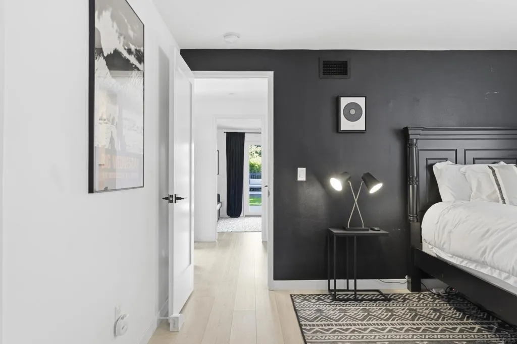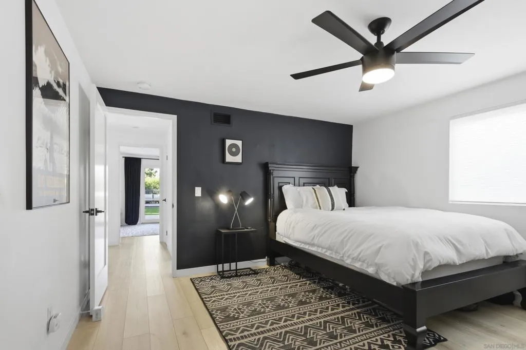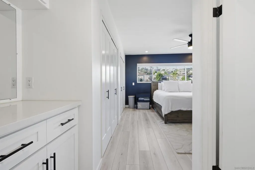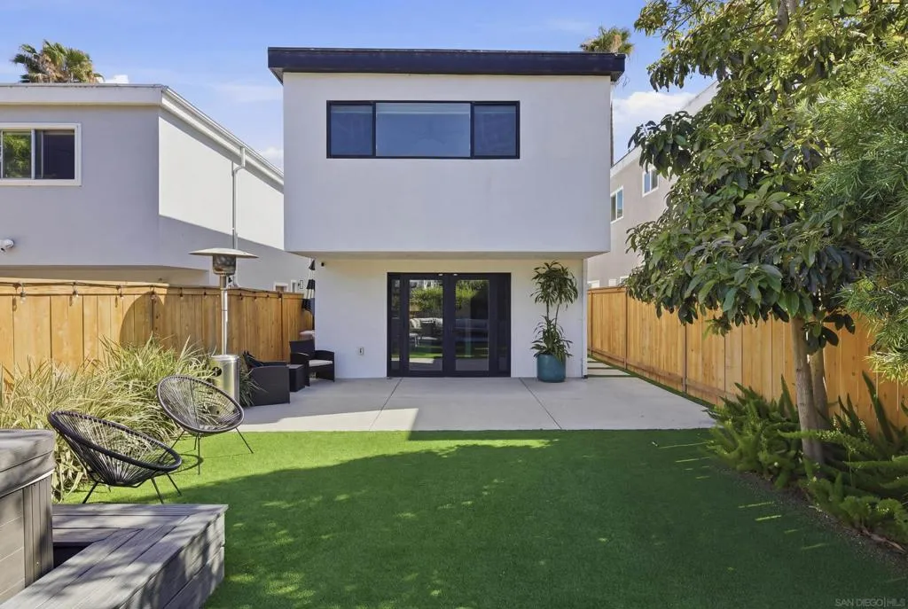Elevated high above the Pacific Beach flats, Bay View Modern is a rare find that perfectly balances privacy, high-tech luxury, and breathtaking southern views of Mission Bay. Situated at the end of a quiet cul-de-sac with no through traffic, this home is nestled in a friendly community that’s just minutes from local shopping and top-tier schools. The residence underwent a full interior remodel in 2019 followed by an exterior stucco and paint refresh in 2020, resulting in a turnkey sanctuary equipped with house-wide voice-activated lighting, updated windows with custom treatments, and an in-wall surround sound system. The versatile floor plan features two bedrooms and a bathroom on the lower level, while the upper level serves as the heart of the home with a third bedroom, bathroom, and an open-concept kitchen and living area designed to take full advantage of the glistening water views. The chef-inspired kitchen offers modern conveniences like a pot filler and integrated lazy Susans. From the front balcony, you are treated to a front-row seat for vibrant San Diego sunsets and the magic of July 4th fireworks glistening over the bay. Outdoor living is redefined in the 2023 remodeled backyard, which features a large patio and deck, a seven-seater jacuzzi with built-in Bluetooth audio, and a mature avocado tree producing impressive fruit. This smart-home retreat offers ultimate peace of mind with fully paid solar, a new water heater installed in March 2026, a smart doorbell system, and a My Q smart garage door opener. By combining a "top-of-the-world" feel with effortless access to the best of San Diego, Bay View Modern represents the pinnacle of sophisticated coastal living.