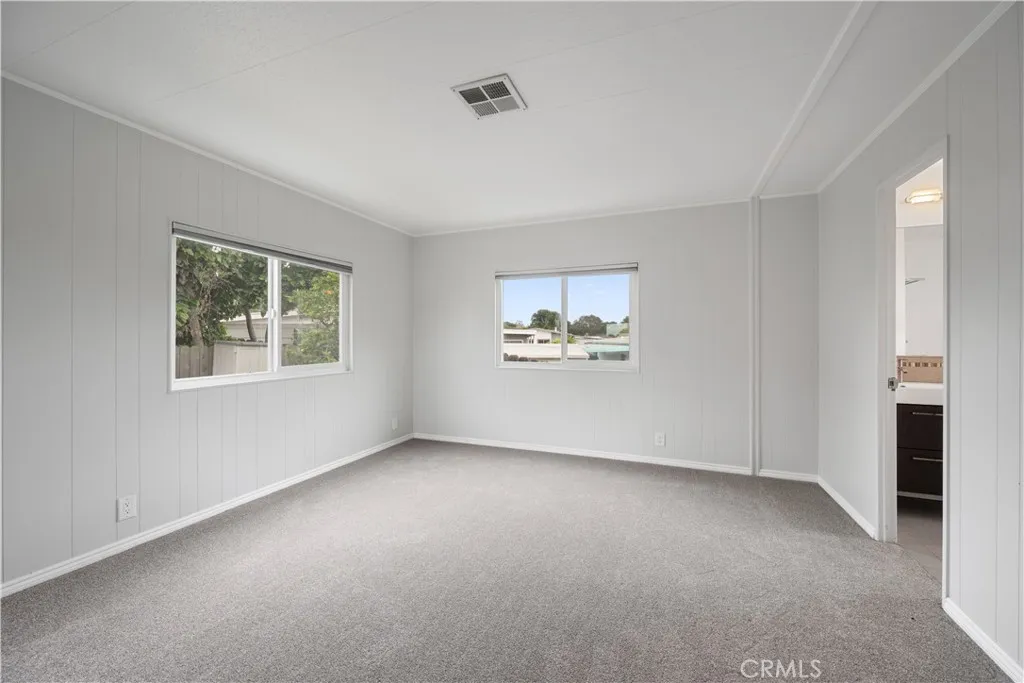 This extensively remodeled mobile home in Los Osos, offers an elevated approach to Central Coast living, featuring a thoughtfully designed open floor plan and refined upgrades throughout. Interior elements include wood laminate flooring, crown molding, recessed LED lighting, skylights in the kitchen and den, and vinyl dual-pane windows that create a bright and well-integrated living environment. The entry is stair free and wheel chair accessible! The kitchen is well-appointed with quartz countertops, a farm sink, tile backsplash, newer appliances, self-closing drawers, and generous cabinetry, with added natural light from overhead skylights. The living and den areas are enhanced with wainscoting and ceiling fans, while French doors open from the den to a private covered deck, extending the living space outdoors. The primary suite offers new carpeting and a spa-inspired bathroom complete with a soaking tub, separate custom tiled shower, double sinks, quartz countertops, and an upgraded vanity. The guest bathroom continues the updated design with quartz countertops, an upgraded vanity, and a custom tiled shower. Outdoor spaces are thoughtfully arranged to support a variety of uses, including a private covered deck, terraced garden area, low-maintenance turf section, and a backyard area suitable for planting, including citrus. Additional features include a covered carport with direct access and a custom shed configured for storage or workshop use. Situated in Los Osos near the coast and local amenities, this home is located within the Sea Oaks Mobile Home Park, offering access to a heated pool and spa, clubhouse with kitchen facilities, and shared community spaces. This property combines refined interior upgrades with flexible outdoor living in a comfortable Central Coast setting.
