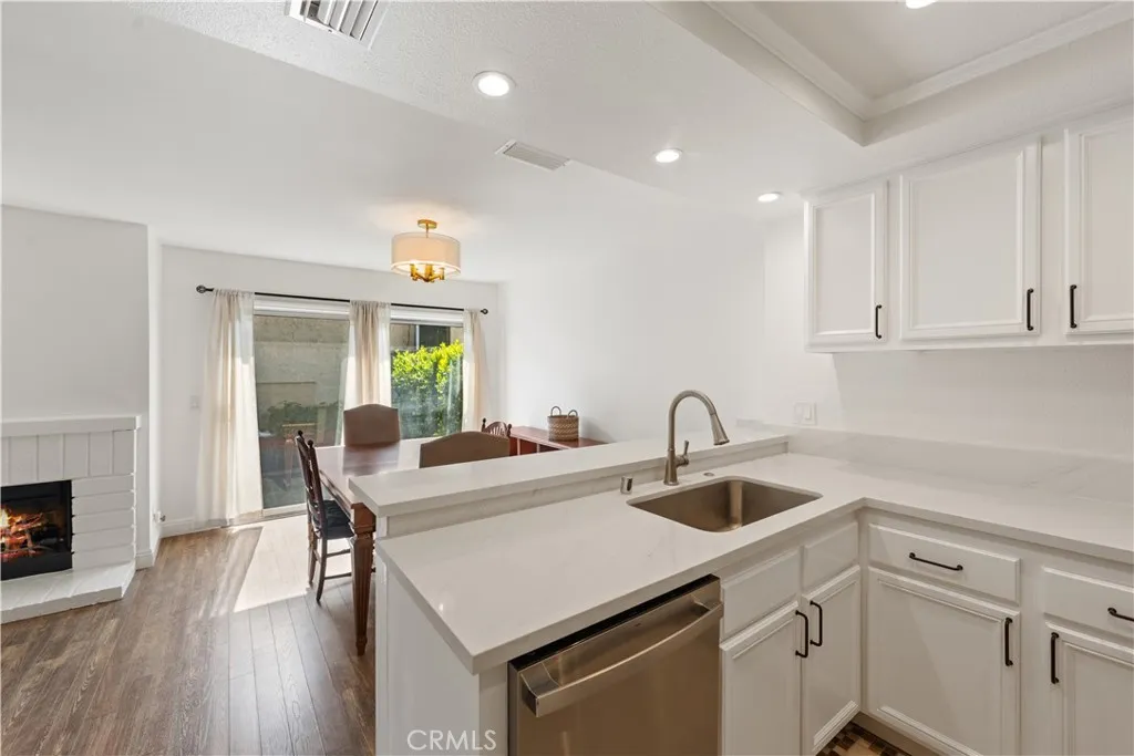 Welcome to the highly sought-after Glenwood Townhome Community in San Dimas! This beautifully upgraded single-story corner unit offers a host of modern improvements. The kitchen has been completely remodeled with elegant Quartz countertops, new fixtures, white cabinets, and new stainless steel appliances, including a stove/oven, microwave, and dishwasher. The central heating and AC system is brand new. Stylish flooring has been installed throughout the entire home, creating a cohesive and fresh look. Recessed lighting has also been installed throughout the unit, providing an abundance of brightness and a clean, modern ambiance. Both bathrooms have also been fully renovated with high-quality finishes, Quartz countertops, new fixtures, and new mirrors, adding to the home's move-in-ready appeal. The laundry room has been moved to the hallway, preventing you from having to go all the way to the garage to do your laundry. ~ This floor plan features a cozy family room area, perfect for both relaxation and entertaining. Enjoy a nice fireplace and a dining space that looks out onto an oversized private patio—ideal for indoor-outdoor living. The home features generously sized bedrooms, with the third currently used as a den or office with built-in bookcases. Additional highlights include a 2-car garage with a new garage door, 220V plug available in the garage to charge your EV, a wash sink, upgraded flooring, and direct access to the unit through the patio. The community amenities are exceptional: a sparkling pool and spa, clubhouse, children's play area, tennis and basketball courts, BBQ areas, guest parking, and even RV parking options. Thank you for showing this prime property in one of the community’s best locations!