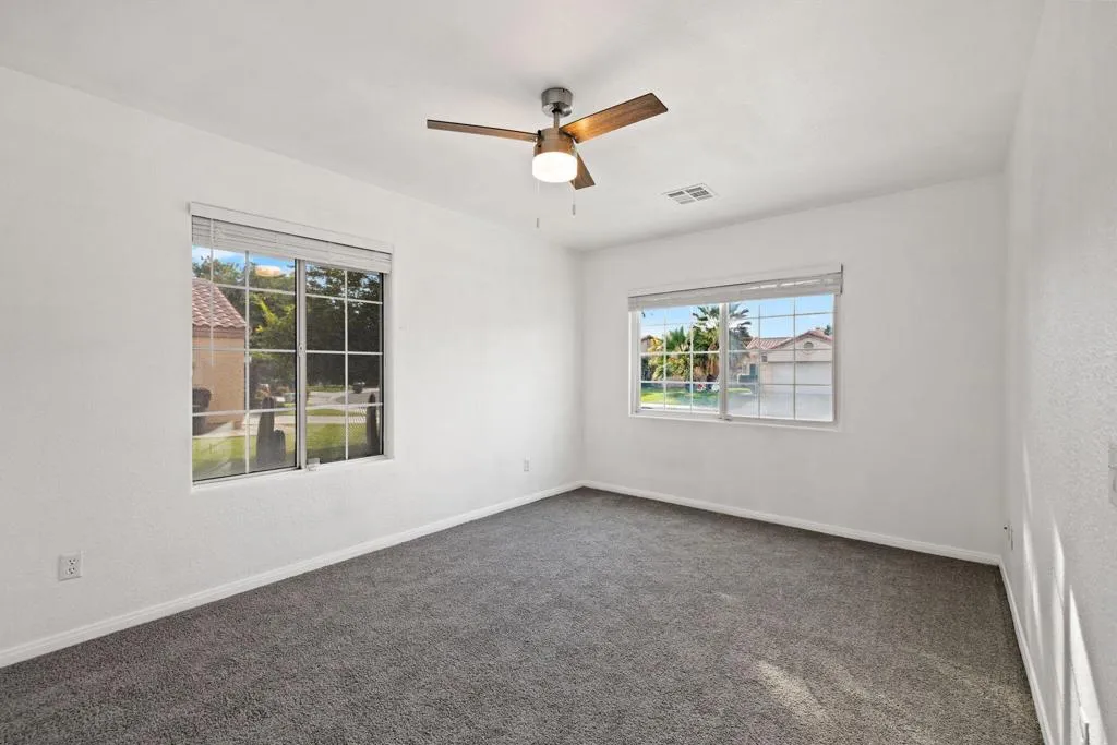 Welcome to this chic desert abode located in the highly sought-after La Quinta Vistas neighborhood. Upon entry, you're greeted by a bright open-concept living and dining area featuring luxury wood-like vinyl flooring and stylish modern lighting throughout. An inviting ambient fireplace subtly separates the living space from the family room, which opens to a well-appointed kitchen with contemporary gray cabinetry, newer stainless steel appliances, and a cozy breakfast nook, perfect for enjoying your morning coffee. The home offers four spacious bedrooms with plush newer carpeting and two tastefully updated bathrooms. The primary suite features dual sinks, a soaking tub, and a walk-in closet for added comfort and convenience. Step outside to an expansive backyard with mature landscaping, ideal for entertaining, complete with a built-in BBQ. Additional highlights include a two-car garage and a laundry room equipped with a newer washer and dryer. Ideally located near shopping, popular restaurants, golf courses, and highly rated schools, this home offers the perfect blend of comfort, style, and convenience.