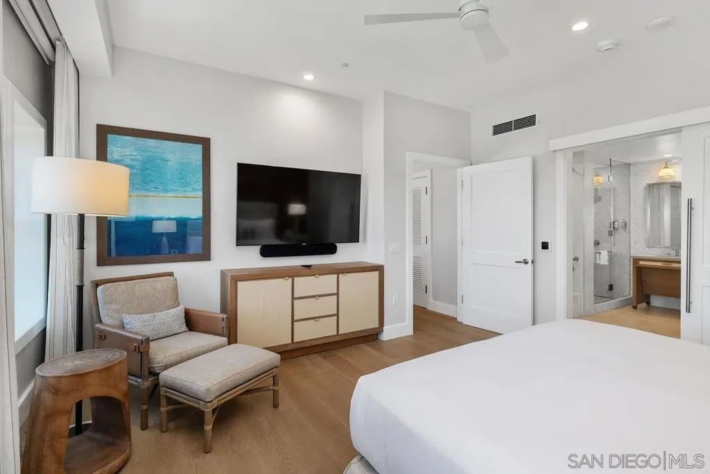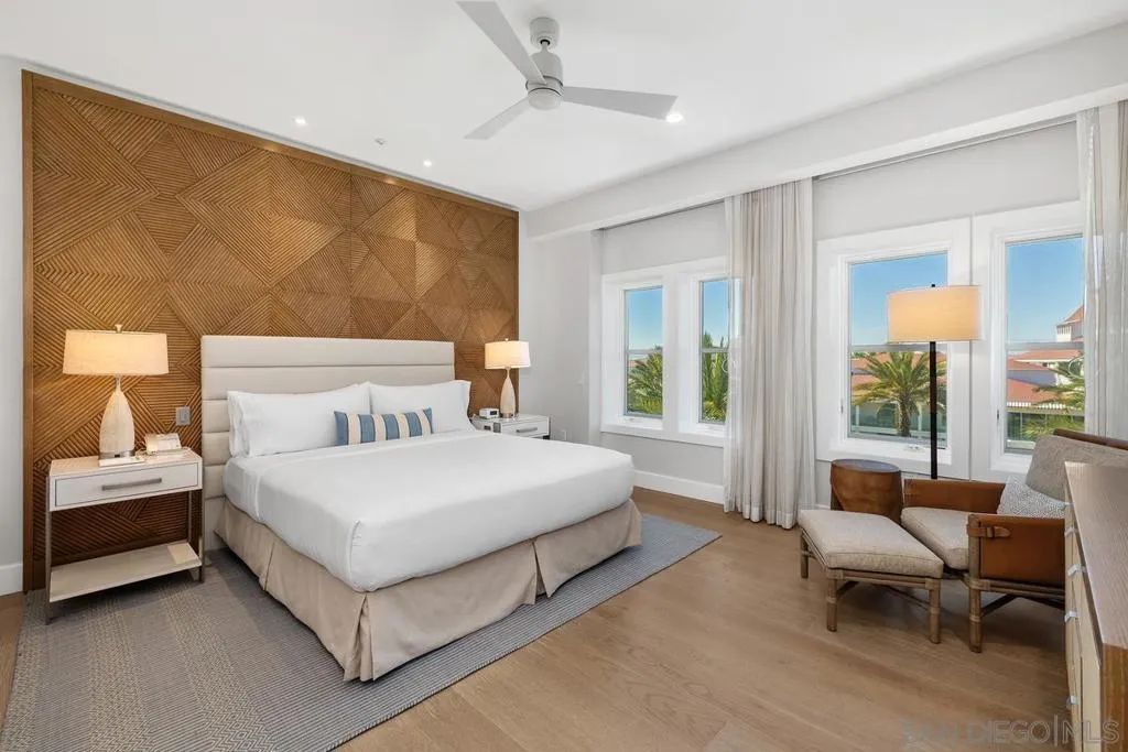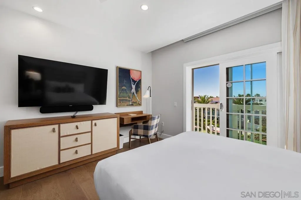 Owning a residence at Shore House is a once-in-a-lifetime opportunity to secure a piece of paradise along the Coronado coastline while gaining access to the Hotel del Coronado’s world-renowned hospitality. Residence 74 is one of only three “hospitality” layouts in the entire collection, offering an expansive 1,484 SQFT, 2BR/2.5BA sanctuary. The interior is a study in effortless coastal sophistication. At the heart of the residence is a spacious great room anchored by a fireplace & a signature L-shaped sectional, perfect for family gatherings The chef-inspired kitchen features a large center island, beverage center & a formal 8-person dining table, a rare configuration designed for entertaining .Glass doors open to a private Juliet balcony, framing panoramic, unobstructed views of the iconic Red Turret & the legendary front façade of The Del. As a Shore House owner, enjoy a "resort-within-a-resort" experience with exclusive amenities: a zero-edge infinity pool, Jacuzzi, cabanas, an open-air bar, & beachfront fire pits. Owners benefit from a dedicated arrival, private check-in & complimentary valet, along with full access to The Del’s world-class spa, fitness center & premier beach service on Coronado’s famous white sands. This full-ownership, limited-use property blends a legacy second home with a professionally managed rental program for seamless, hands-free income. The ultimate investment in lifestyle & legacy. The primary suite offers a true retreat, featuring a luxurious bathroom with a walk-in shower & double vanity sinks. With the inclusion of a queen-size pullout, an in-unit washer/dryer, the home comfortably sleeps eight. This residence also boasts intelligent "Two-Key" functionality, providing owners with maximum rental flexibility & utility