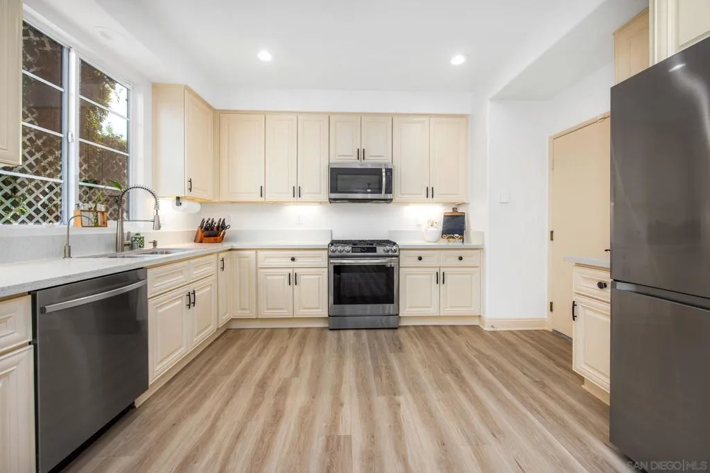 Rare opportunity to own a 4 bedroom, 3 bath dream home in the highly sought-after gated community of Belleza in San Marcos. This bright and airy residence features a spacious open floor plan filled with natural light, fresh paint, new hardware, and thoughtful upgrades throughout. A full bedroom and bath on the main level make it ideal for guests or multigenerational living. Upstairs, the expansive primary suite provides a peaceful retreat, complete with a versatile loft—perfect for a home office, playroom, or additional lounge area. The home also offers dual garages, providing plenty of parking and extra storage. This SMART home is equipped with a new tankless water heater, a high-end energy-efficient HVAC system, and a Tesla charger, offering modern convenience, comfort, and sustainability. Step outside to a private outdoor space, perfect for entertaining or relaxing, and enjoy access to Belleza’s private community park. Conveniently located near top-rated schools, Cal State San Marcos, the Coaster station, and just minutes to shopping, dining, Starbucks, and Highway 78—this home blends comfort, location, and lifestyle in one incredible package. Don’t miss this one!
