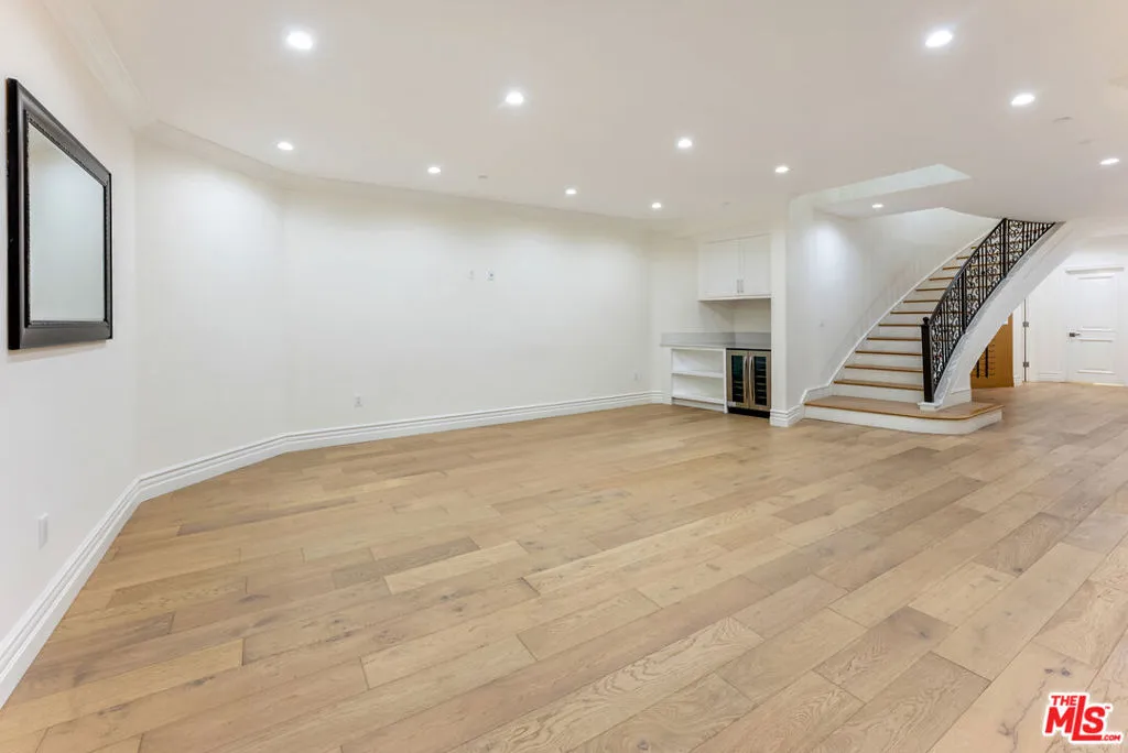 Wonderful newly build Mediterranean contemporary in Brentwood! Walk to the best cafes, restaurants. Many private schools and public schools are minutes away. Over 7000 sf, high ceilings, open floor plan beautiful white oak floors throughout. French doors open to back yard from the living room with fireplace and outdoor fire pit, built-in barbecue, and small separate office/flex room. Private and gated from the street. Truly an amazing kitchen with huge center island and separate full catering kitchen - perfect for entertaining. Kitchen is open to large family room and French doors to yard. The lower level is huge with high ceilings, family game room, gym potential great theatre and small maids and bath. Upper bedrooms is a landing area great for work space and 4 ensuite generous bedrooms. The primary is huge with a fireplace, stunning primary bath and custom built in closets. A wonderful home that's beautifully done!