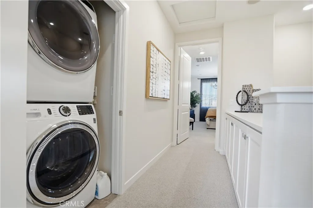 Welcome to this stunning former model home, perfectly positioned in one of the Oasis neighborhood’s most sought-after locations with views to Boulder Pond. Thoughtfully designed and professionally curated, this residence showcases the elevated finishes and distinctive details you can only find in a model home. From the moment you enter, you’ll notice the seamless blend of style and functionality, highlighted by beautiful luxury vinyl plank flooring, designer quartz countertops, and a suite of stainless steel appliances. Every space has been intentionally crafted with high-end touches, including woven shades, curated light fixtures and beautiful tile work that set this home apart. The open-concept layout is ideal for both everyday living and entertaining, while large windows invite in natural light and the sliding door and covered deck allow for fresh air and cool breezes. Just upstairs are both bedrooms with beautiful lighting and both with ensuites with custom tile floors and showers plus quartz countertops. The laundry is also conveniently located on this level adding to the well thought out floorplan. Enjoy two outdoor spaces with the gated front patio on the first floor and the covered deck off the living room. Enjoy the added benefit of owned solar, providing energy efficiency and long-term savings. Also enjoy a 2 car garage with a large window providing natural light and opportunities for an at home gym, or workbench area. This is a rare opportunity to own a home that combines premium upgrades, designer finishes, and an unbeatable location—all in one exceptional package.
