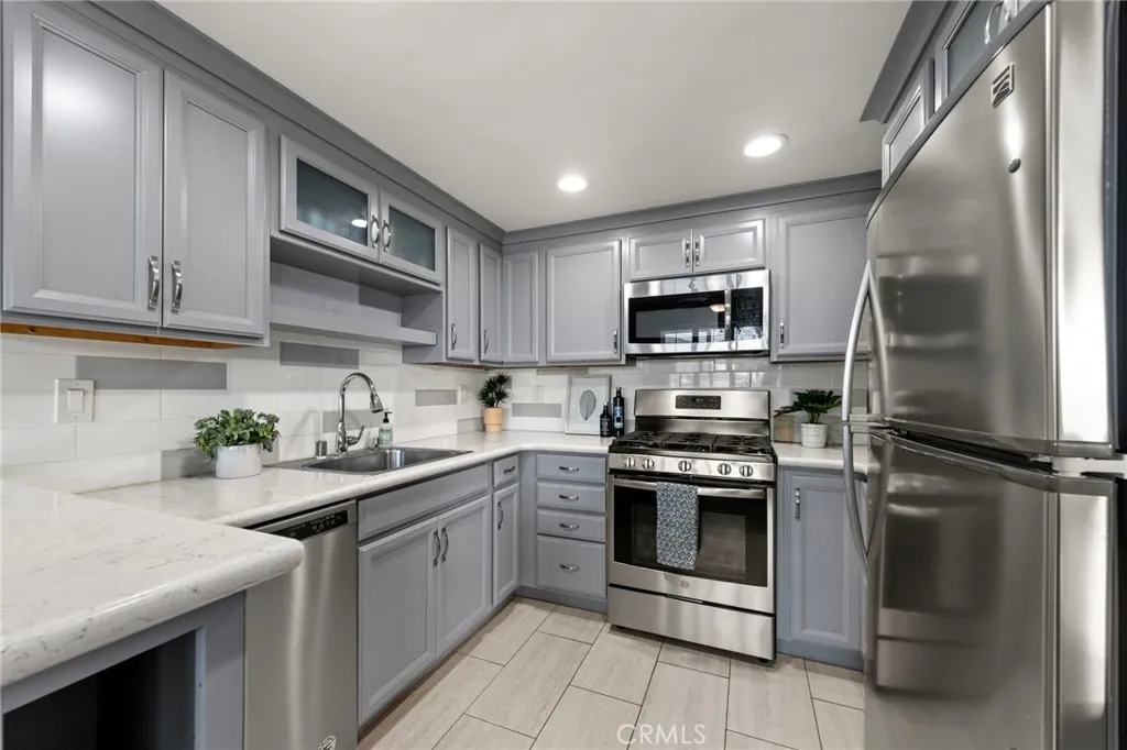 Welcome to this beautifully updated condo in the heart of San Pedro, offering a bright and spacious open floor plan designed for comfortable living and effortless entertaining. The fully remodeled kitchen features sleek white countertops, modern grey cabinetry, and ample prep space, seamlessly flowing into the dedicated dining area. The inviting living room is anchored by a stylish electric fireplace and opens to a private balcony—perfect for relaxing or enjoying coastal breezes. A long hallway provides exceptional storage with multiple closets, including a convenient side-by-side laundry setup tucked neatly within one. The generously sized primary bedroom includes an attached full bathroom, creating a peaceful retreat at the end of the day. Located within a gated community, residents enjoy access to a spa and outdoor patio area, offering both privacy and resort-style amenities. Included is a tandem assigned parking for 2 vehicles. This unit is also primely located near multiple hiking trails! This is San Pedro living at its best—modern, functional, and move-in ready.