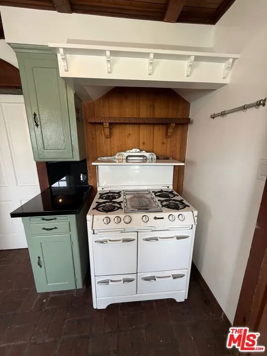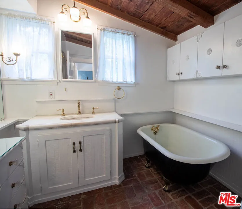 Charming Hillside Cottage on a Private Drive South of the Blvd. Entrance is through a fenced in courtyard & up a curvy brick path. The bright & spacious living room has a fireplace, hardwood floors, beamed ceiling, and lovely treetop and mountain views through a wall of windows. Original ceiling detail in the dining room. The kitchen has a cozy breakfast nook with built-in booth and a classic O'Keefe & Merritt gas stove with a grill, a new refrigerator, new granite countertops and used brick floor. Large pantry/laundry room with built in shelves and stack washer & dryer. Two main floor bedrooms with built-in custom cabinetry. Large bathroom with a vintage claw foot tub, separate shower and lots of storage. The downstairs garden floor has a bedroom with a walk-in closet and built in cabinets. Spacious family room/studio/media room with a fireplace, two big windows and a French door leading to the garden. Large wine cellar with storage. Two car garage with direct entry. This is a (Robert) Bryd House on a lane with 3 other Byrd Houses, quite unique! Near Freeways, Studios, Fantastic Restaurants, So Much Shopping, a Great Farmer's Market & Very Close to Trader Joe's. Several Schools are just down the road.