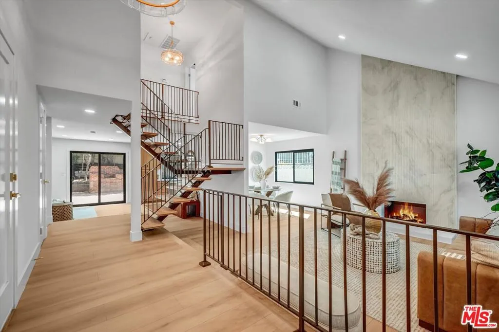 Beautifully remodeled and move-in ready, this 4-bedroom, 4.5-bath home in desirable Palo Del Amo Woods blends architectural character with stylish modern updates. A dramatic two-story living room anchored by a sleek fireplace creates a striking first impression and opens to the dining area, while the bright and spacious kitchen offers abundant counter space, ample cabinetry, and room for a casual dining nook or lounge space overlooking the backyard. The thoughtfully designed main living areas wrap around an architecturally unique central staircase, creating an impressive focal point and seamless flow throughout the first floor. Upstairs, three bedrooms each feature their own private bathrooms, including a generously sized primary suite with a spacious seating area or flex space, ideal for a home office, retreat, nursery, or workout area. Downstairs, an additional bedroom with a full bath plus a powder room offers flexibility for guests, multigenerational living, or work-from-home needs. Step outside to a backyard designed for both relaxation and entertaining, complete with a covered patio and mature fruit trees. Additional highlights include a direct-access 3-car garage, a generous driveway, and a layout that balances comfort, style, and functionality. Located in the sought-after Palo Del Amo Woods community, known for its wide streets and neighborhood pride, this home is conveniently situated near parks, shopping, dining, and major commuter routes.