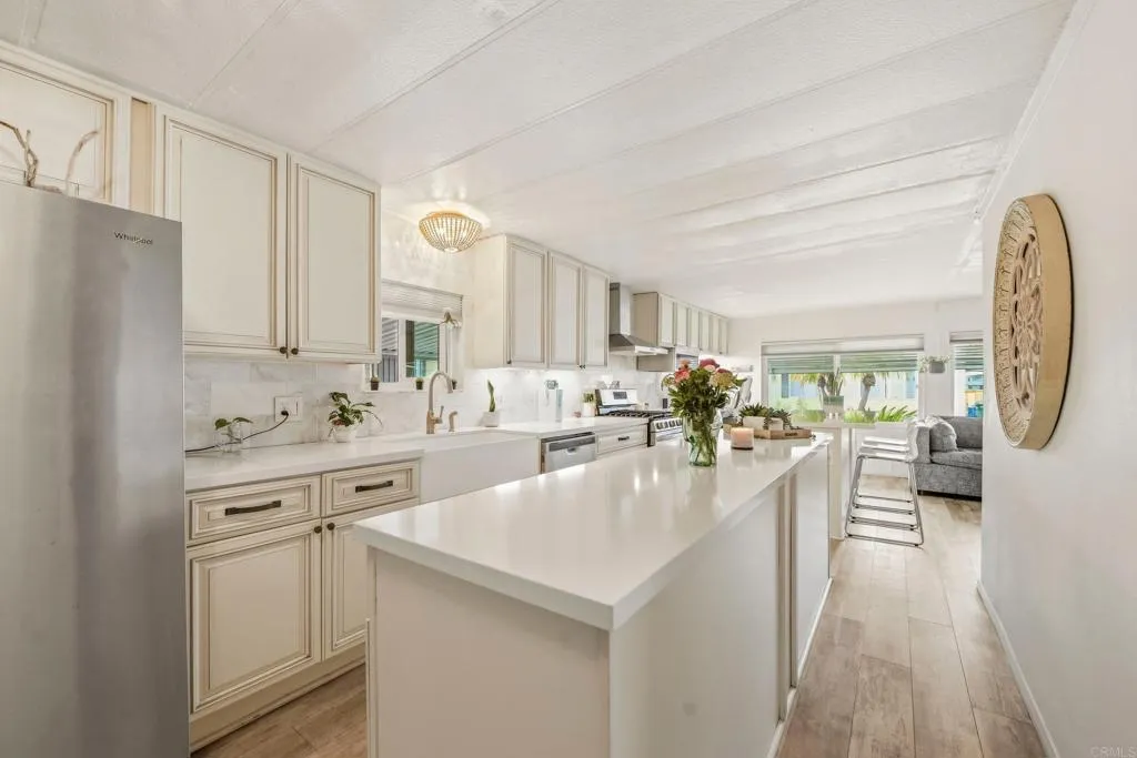 1.5 miles from the coast, 33 Parkwood Lane invites you to slow down and enjoy the effortless beauty of coastal living in Oceanside. This beautifully remodeled 3-bedroom, 2-bath manufactured home offers 1,248 sqft of light-filled space, thoughtfully designed for both comfort and style. The heart of the home is a stunning kitchen featuring two islands—perfect for morning coffee, casual dining, or gathering with friends after a day at the beach. Updated bathrooms add a spa-like touch, creating a true sense of everyday retreat. Located in an ALL-AGES community with LOW, controlled space rent of approximately $500/month, this is your chance to enjoy the beach lifestyle without the premium price tag.