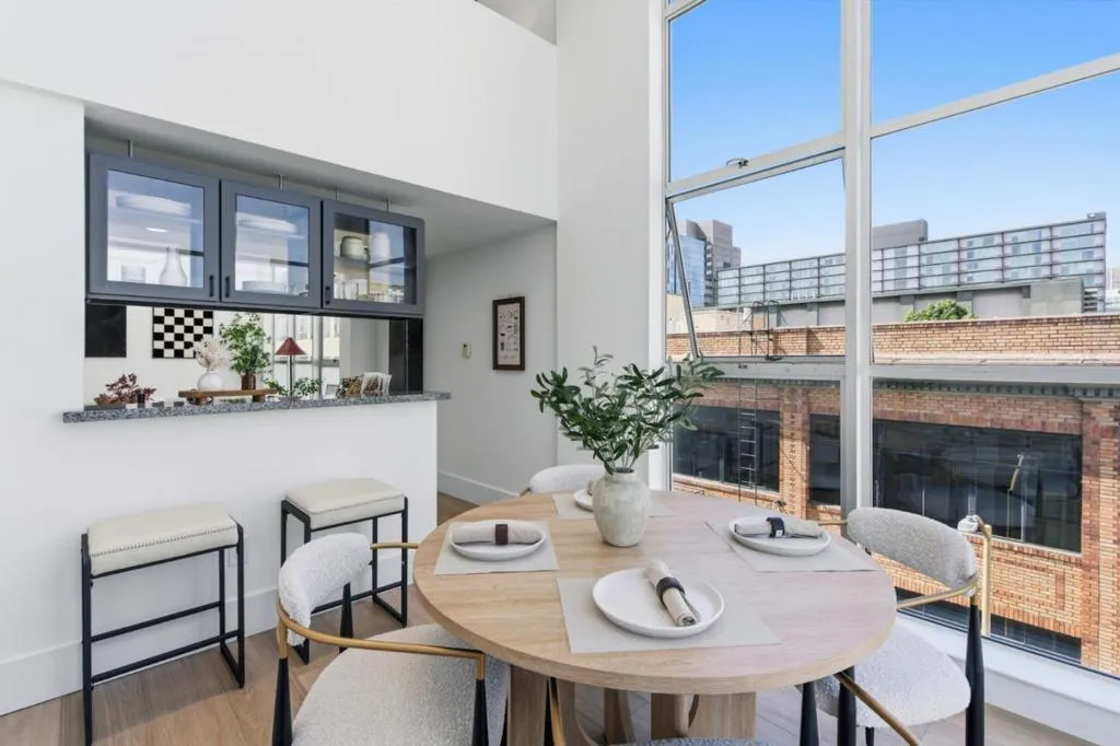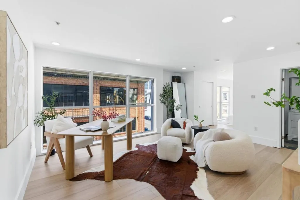 Flooded with natural light and defined by a striking multi-level layout, this modern three-story loft-style residence offers 2BD 2BA in the heart of San Francisco. Recently updated w/ thoughtful design, the home blends architectural character w/ everyday functionality. Dramatic floor-to-ceiling windows and multiple skylights illuminate the interior while framing captivating skyline views. The vertical layout creates a dynamic sense of space and separation, ideal for comfortable living, entertaining, or flexible work-from-home setups. A rare dual-entry design enhances both privacy and convenience, with an upper entrance opening directly to the kitchen and main living area, and a separate lower entrance providing easy access to the downstairs bedroom. Additional highlights include one assigned parking space and dedicated storage. HOA covers water, hot water, and garbage. Residents enjoy access to a stunning rooftop retreat with panoramic 360-degree views of San Francisco, perfect for entertaining, relaxing, or taking in the city skyline at sunset. Ideally located within walking distance to shops, restaurants, cafés, and daily conveniences, this distinctive loft offers the perfect balance of vibrant city living and stylish comfort.