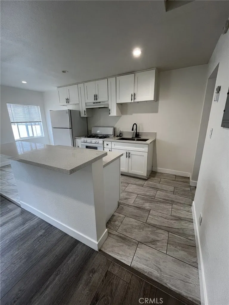 TWO BEDROOM UPSTAIRS APARTMENT FOR RENT! This Freshly Painted and Fully Remodeled upstairs unit has it all with nobody above or below you! Private Balcony Entrance to a Huge Living Room with Air Conditioning and Ceiling Fans! Luxury Wood Laminate Flooring, Dual Paned windows, recessed lights, and a separate dining room open to the remodeled kitchen with granite counter tops and a breakfast bar island, stove, and refrigerator! Remodeled bathroom includes a shower over the tub! Gated apartment complex with street parking only. Walking distance to Normandie Elementary School, bus transportation, and laundromat. Hurry! This one will go quick!