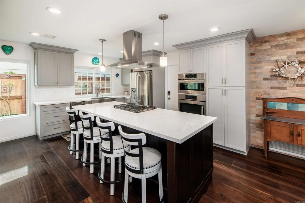 Effortless single-story living with style, soul, and a long list of upgrades—this Rancho Ponderosa gem is the one you’ve been waiting for. Featuring 3 bedrooms, 2 bathrooms, and a thoughtfully designed layout, this home blends warmth and functionality in all the right ways. Step inside to a bright, inviting interior where rich hardwood floors, exposed beams, and a sunken living room create a warm, architectural feel. The fireplace serves as a cozy focal point, perfect for relaxed evenings or entertaining guests. The beautifully remodeled kitchen is a true centerpiece, featuring stainless steel appliances, quality cabinetry, generous prep space, and a large island ideal for gathering, dining, and everyday living. Both the front and backyard showcase lush, well-maintained landscaping, enhanced with thoughtful upgrades including new sod, irrigation improvements, added pavers, and curated drought-conscious plantings. The private backyard offers a peaceful setting for entertaining or unwinding, with no direct rear neighbors—creating an added sense of privacy—complete with a finished shed (installed in 2025 with electrical) that makes an ideal home office, gym, studio, or guest retreat. This home has been meticulously maintained and upgraded throughout. Notable improvements include exterior paint (2023), roof cleaning (2023), upgraded irrigation systems and timers, reinforced and refreshed patio cover with shade screen, added exterior lighting and electrical, new fencing and gates, and extensive drainage and hardscape enhancements. The garage has been fully improved with added storage systems, drywall and paint, updated electrical, and a newer opener (2022). Inside, the home was freshly painted throughout (2022–2023), with solid core doors added to all bedrooms and the hallway bathroom, upgraded window coverings, and enhanced closet organization systems in every bedroom. Additional upgrades include a fire-rated garage entry door, updated bathrooms with new fixtures, cabinetry, GFCI outlets, and a new primary toilet (2024), a beautifully remodeled primary bathroom, as well as ceiling fans with lighting in all bedrooms. Located in a welcoming neighborhood known for its strong sense of community, Rancho Ponderosa offers HOA amenities including community events, parks, playgrounds, sport courts, sidewalks, and maintained easements. The home is also situated within highly sought-after school boundaries, including El Camino Creek Elementary and La Costa Canyon High School. Enjoy close proximity to local parks, shopping, dining, and the beaches of North County. With its extensive upgrades, functional layout, and inviting character, this move-in ready home offers a rare opportunity to enjoy comfort, flexibility, and community in one of the area’s most beloved neighborhoods.