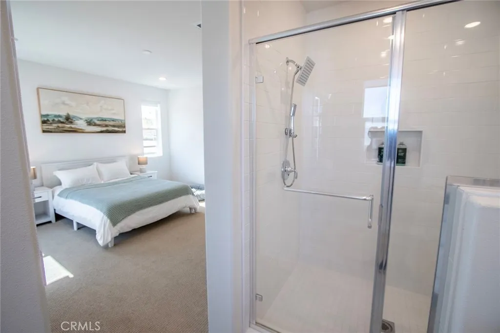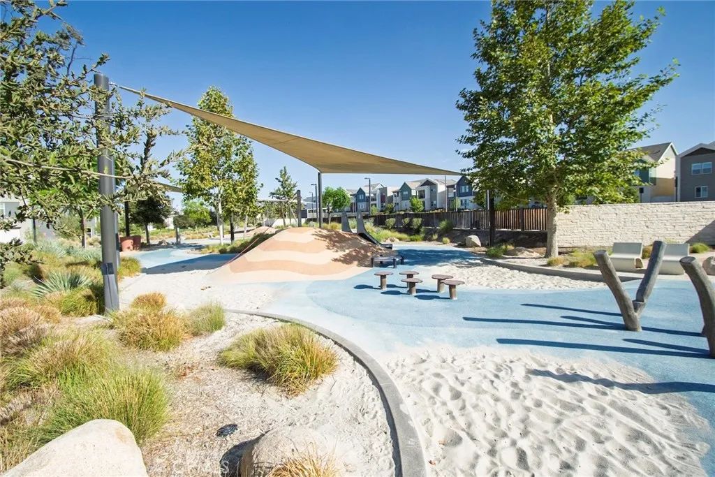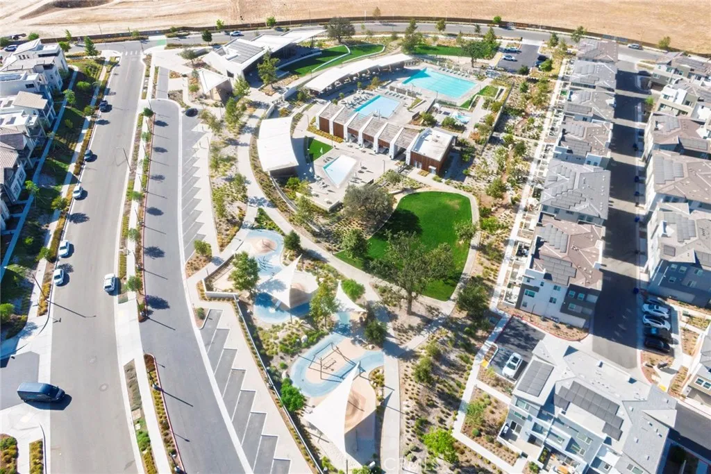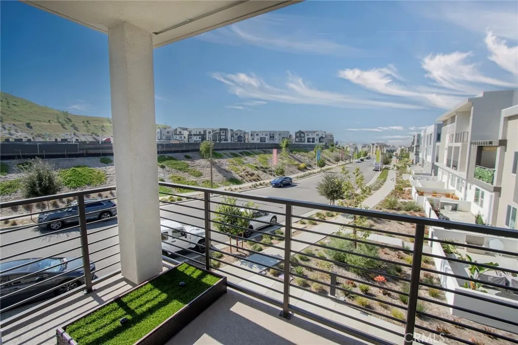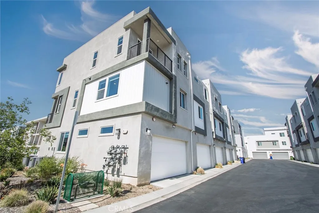 Beautiful end-unit, 3-story condo offering modern design, abundant natural light, and mountain views. The entry level features a private bedroom and full bathroom — ideal for guests, a home office, or multi-generational living — along with direct access to the attached garage. The main living level showcases a spacious open-concept great room with a large balcony overlooking the mountains, perfect for relaxing or entertaining. A generous family room and dining area flow seamlessly into the upgraded kitchen, complete with a large eat-at island, quartz countertops, soft-close cabinetry, and stainless steel appliances. A light-filled powder room is thoughtfully positioned on this level for added convenience. The third floor offers three additional well-sized bedrooms, including a spacious primary suite with an en-suite bathroom. Luxury vinyl flooring runs throughout the main living areas, adding both style and durability. Built just two years ago, this home feels fresh, clean, and move-in ready. Located in a beautifully maintained community featuring a large clubhouse, two pools, and a play area — offering both comfort and lifestyle. Solar is leased and saves your SCE bill.