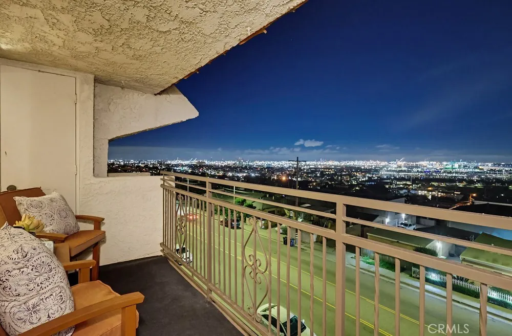 Imagine waking up each morning to a stunning sunrise, watching ships pass through Angels Gate, or winding down at night with city lights sparkling below. From this top-floor end unit in Bay View Terrace, the views stretch across the city, harbor, mountains, and out to the Pacific Ocean. The living room, dining area, kitchen, and private balcony all take full advantage of the panoramic scenery. On the 4th of July, you can even enjoy multiple fireworks shows without leaving home. With no one above you and only one shared wall, this upgraded residence offers both comfort and privacy. Inside, you’ll find engineered hardwood floors, a cozy fireplace, and a remodeled kitchen featuring custom wood cabinetry, quartz countertops, stainless steel appliances, recessed lighting, and tile flooring. Double-pane windows help keep the home quiet and energy efficient year-round. The spacious primary suite includes a tastefully updated three-quarter bath with quality tile finishes and fixtures. A second bedroom is equally roomy and sits next to a full hall bathroom. There’s also a conveniently located laundry closet in the main hallway. This unit includes two side-by-side parking spaces plus overhead storage. Community amenities feature a pool, spa, gym, free high-speed internet, and well-maintained grounds. There's also an elevator to take you fron the parking garage to the walkway that leads to the unit so no need to navigate stairs with this one. Located in the sought-after Palisades area of San Pedro, you’ll enjoy cool ocean breezes and easy access to Cabrillo Beach, Point Fermin Park, the Korean Friendship Bell, and the upcoming West Harbor waterfront development. Move-in ready and priced under $600,000, this is a rare opportunity to own a home with truly breathtaking views at an afforable price. Don't miss it!!