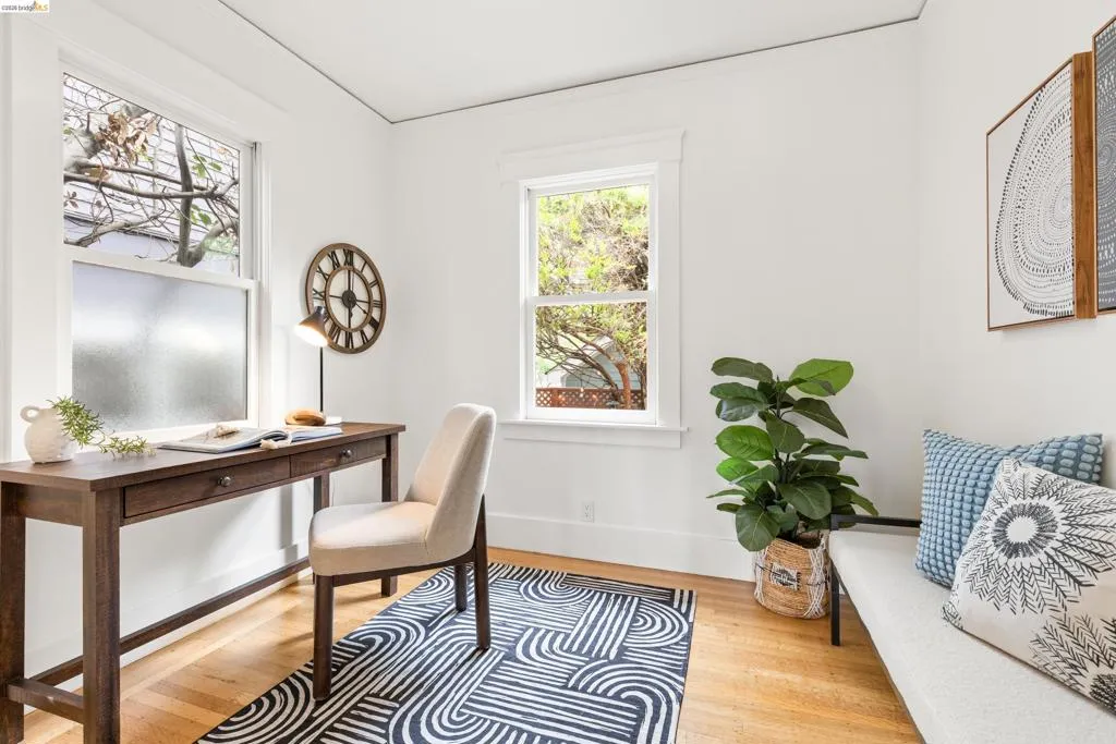 This charming, centrally located Craftsman bungalow is scaled perfectly—it’s small, but mighty. If you’re looking to consolidate, downsize, or put your foot on the first rung of the Berkeley housing ladder, you’ve found your new home. Walk into the spacious living area featuring accent stained-glass windows and a fireplace with artisan tiles. It’s bright and cheerful—naturally lit with southern-facing, generous windows. 1741 Derby St. features gleaming wood floors, a spacious bedroom, ample closets, and an eat-in kitchen. A second bedroom is perfect for working at home or putting up the crib. Whether it’s a Zoom call or nap time, enjoy the quiet calm while you look out at your trees. Spend a romantic evening sitting by the fire. Display your favorite house-warming gifts in the period-authentic, built-in cabinet in the kitchen. The kitchen features a gas stove, dishwasher, plenty of counter space and storage, plus a morning-sun-drenched dining nook. Host family and friends under the fairy lights in the backyard, or relax on the deck with your book and a coffee. The arts, great restaurants, shopping, a great library, a well-equipped YMCA, and excellent transit are all in nearby Downtown. Your dream home is a reality, right where you want to be. Welcome home.