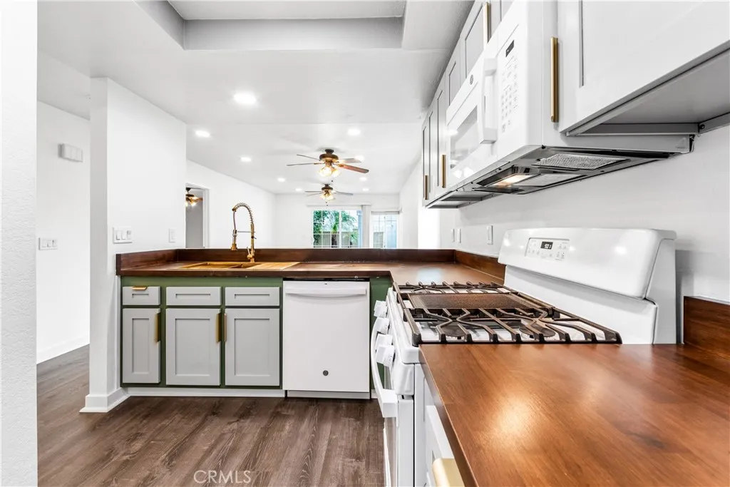 Remodeled Cape Cod Style Condo for Sale in Stone Harbor! Nestled in a quiet corner of the highly sought-after Stone Harbor community, this beautifully remodeled single-story Cape Cod style condo offers the perfect balance of comfort, privacy, and convenience. Featuring a spacious open floor plan, this end-unit home includes 2 generously sized bedrooms and 2 updated bathrooms, ideal for those seeking a modern, low-maintenance living space. The condo is perfectly situated on the HOA-maintained greenbelt, providing added privacy while still offering easy access to all of the neighborhood’s amenities. Recent upgrades include fresh paint, low-maintenance luxury vinyl plank (LVP) flooring throughout, new countertops and cabinetry, and a brand-new AC system with a smart thermostat for year-round comfort. The kitchen has been fully upgraded with new appliances—including a gas stove—new hardware, and a breakfast bar that overlooks the open-concept living and dining areas. Additional updates include newer dual-pane windows and patio sliding door, ensuring energy efficiency and a light-filled home. The primary bedroom is a peaceful retreat, complete with an en-suite bath and a generously sized walk-in closet. As an added bonus, the property includes a designated parking spot directly in front of the entry door, as well as a detached single-car garage located conveniently next to the parking space. The garage is equipped with a side-by-side washer and dryer for added convenience. Step outside into the refreshed backyard, where you'll find a spacious and private oasis, complete with lush landscaping and a gated entrance to the greenbelt—perfect for relaxing or entertaining guests. Community amenities include a sparkling saltwater pool and spa, a built-in BBQ area, and plenty of guest parking, making this the ideal place for both relaxation and socializing. Conveniently located near shopping, freeways, parks, and schools, this condo offers the perfect combination of comfort, style, and location. Don’t miss your chance to make this stunning home yours!