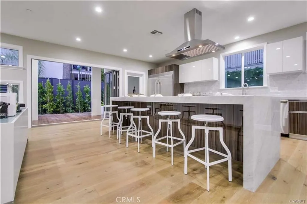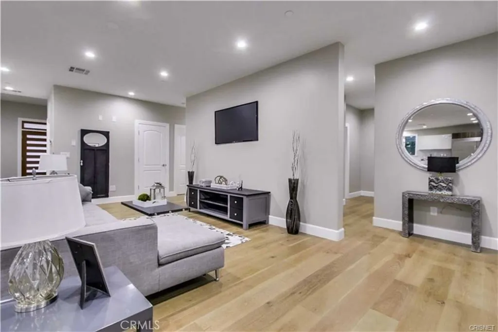 Set in the Colfax Meadows neighborhood of Studio City, this modern residence offers nearly 4,600 square feet of bright, functional living with five bedrooms and seven bathrooms. High ceilings, wide-plank hardwood floors, and expansive windows create a bright, open interior. The kitchen is anchored by a large island, stone countertops, a walk-in pantry, and professional-grade appliances, opening directly to the main living areas and creating a natural flow between spaces. Large glass doors open from the main living space to the backyard. Additionally, the main level includes two en-suite bedrooms, a separate room with direct patio access suited for both office and guest use, and a conveniently located laundry area. Upstairs features a stunning and spacious primary suite with a large walk-in closet and spa like bath in addition to a secondary bedroom with stunning natural light. Expansive bi-fold doors open to a versatile bonus area with a full bath and dedicated in-home theater, well suited for a secondary living, workspace, or entertainment area, with a seamless connection to the outdoor deck. An enclosed front yard with drought-friendly landscaping adds privacy and curb appeal. Additional highlights include a two-car garage with EV charger and high-speed internet hardwired throughout. Located close to Ventura Boulevard’s popular restaurants, cafés, and everyday conveniences, and within the sought-after Carpenter Community Charter School district. The property offers strong income potential, adding flexibility for both end users and investors.