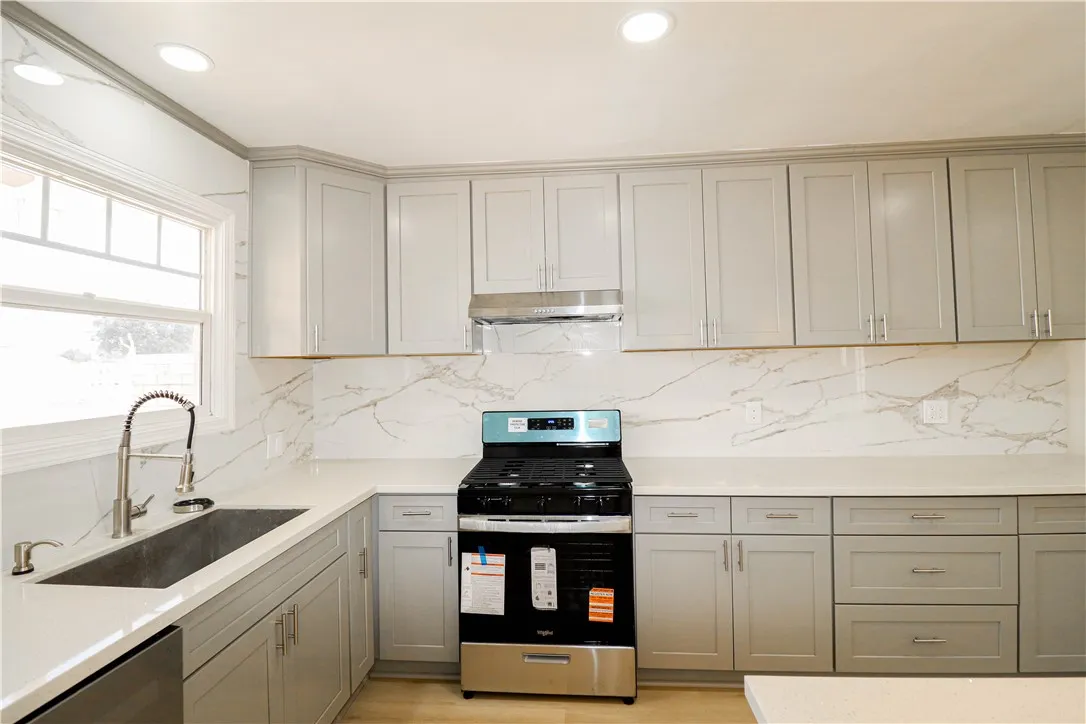 Welcome to your new home, a beautifully refreshed residence in the heart of Anaheim that perfectly blends modern style with functional living. This 3-bedroom, 2-bath home has been recently remodeled with a thoughtful layout designed for today’s lifestyle. Enjoy fresh interiors, including updated vinyl plank flooring throughout the house, contemporary recessed lighting, and freshly painted walls. The heart of the home is the expansive, light-filled kitchen. It features sleek quartz countertops, a dramatic marble-style backsplash, brand-new dishwasher and gas range, and custom grey shaker cabinetry. The oversized center island with shiplap detailing provides the perfect spot for morning coffee or casual evening gatherings. The dining area has been cleverly reimagined as a dedicated office space, perfect for those who work from home or need a quiet study nook. Step into the large, sun-drenched enclosed patio. Featuring durable tile flooring and wrap-around windows, this versatile space is ideal for year-round entertaining, a home gym, or a secondary lounge. Both bathrooms have been stylishly updated. One features a deep soaking tub with marble-patterned tile, while the second offers a clean, spacious shower. The exterior offers a private courtyard with paved surfaces for low-maintenance care, 2-car garage with brand-new garage door, and ample space for RV or oversized vehicle parking. Located in a quiet neighborhood with easy access to all that Anaheim has to offer, this home is move-in ready and waiting for its next chapter.