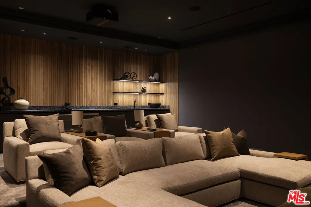 Presenting a brand-new, masterful 2026 build of exquisite design and architecture, newly completed in Pacific Palisades' coveted Upper Riviera with jaw-dropping ocean and city views plus a huge yard. Lush, carefully manicured trees and landscaping provide contrast to the home's stone, metal, and glass facade, fusing the composition with its natural environment. An 11-foot-high pivot door welcomes guests into the light-filled foyer with a beautiful double-height space and wide-plank oak floors that can be found throughout the estate. At the center of the home there is a three-story floating staircase, flooded with natural light to illuminate each floor. Enjoy unique, premier amenities throughout, including two full wet bars on both entertaining levels, a car lift with Carousel USA turntable in the two-story garage, glass vehicle display, elevator, Fleetwood doors, and a total of 2,000 square feet of upper deck space. The gourmand's kitchen includes chef-grade Gaggenau luxury appliances and a gorgeous Taj Mahal marble display wrapping the hood and flowing across backsplash and center island. There is also a caterer's prep kitchen dressed in lady white marble. The primary suite has incredible volume with a book-matched fireplace and floor-to-ceiling glass that opens to striking ocean views from the 1,300-square-foot wraparound deck. The spa-inspired bath has a giant shower with soaking tub plus dual floating vanities with smart mirrors and makeup desk, and the large walk-in closet is equipped with custom built-ins and dresser island. The lower level has a sauna, gym, 640-bottle wine storage, large theatre with Silver Wave marble snack bar, and two secondary bedrooms that access the resort-like rear grounds. In the 9,000-square-foot backyard, discover a beautiful poolside pavilion with outdoor living room/cabana, 12-person dining space, barbecue, leatherized Belvedere marble bars, and fruit garden. Swim in the sparkling 20-foot by 50-foot pool with Baja shelf and spa, roam on the grassy lawn, or converse around the fire table, all enclosed by privacy hedges. Welcome to this prized Upper Riviera location, known for its fantastic panoramic vistas of the Pacific Ocean, Catalina Island, the Santa Monica Pier, Getty Center, fairways, and sprawling cityscape.