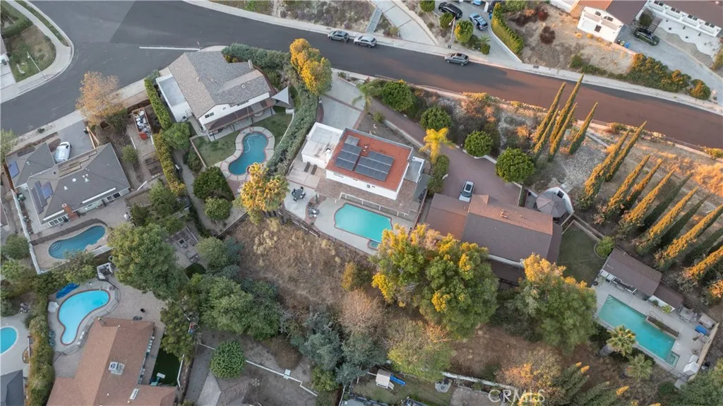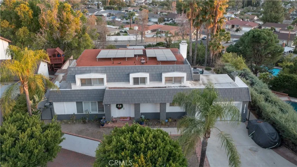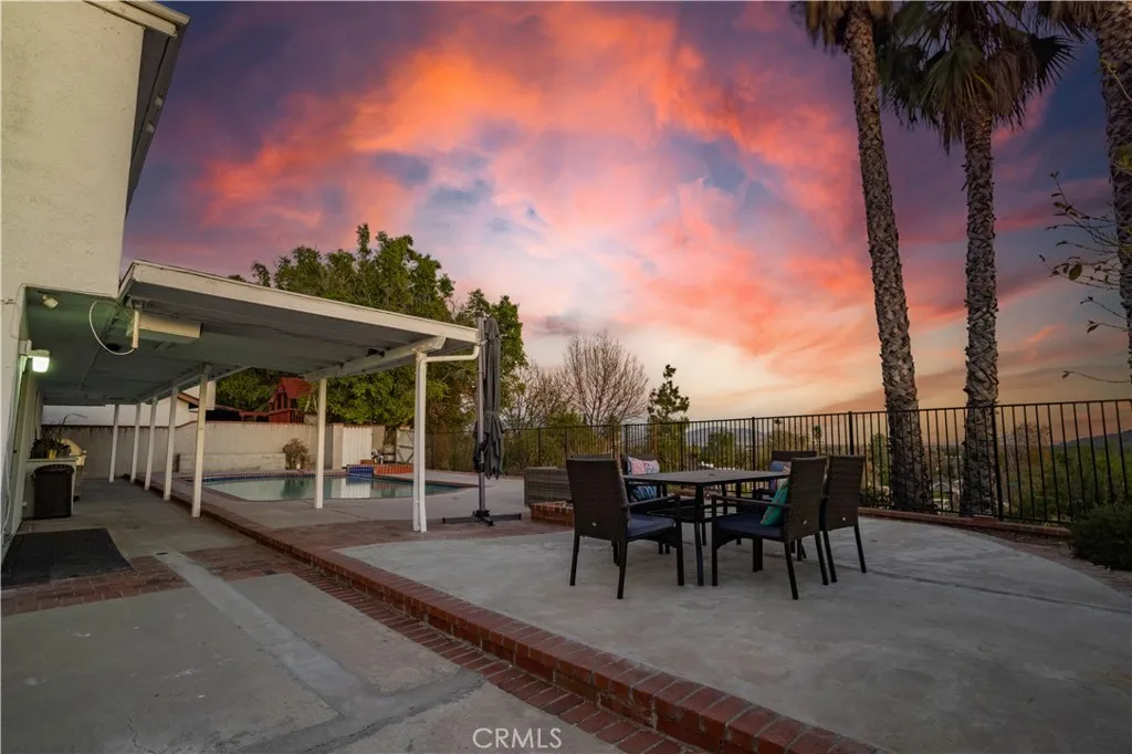 Now Featuring a Completely Remodeled Kitchen! This stunning Granada Hills home is located in a highly desirable North of Rinaldi neighborhood and offers unobstructed panoramic Valley views. A long private driveway lined with lush landscaping and brick-capped planters creates beautiful curb appeal and leads to a spacious 2,338 sq ft open-concept floor plan. Inside, the home is move-in ready and features plantation shutters along with a stylish blend of laminate and tile flooring throughout. The bright living room is filled with natural light from sliding glass doors and features a cozy fireplace with raised hearth plus a convenient entertainer’s wet bar, making the space perfect for both relaxing and hosting guests. The newly remodeled kitchen is designed for both function and style with abundant cabinetry, quartz countertops, a dual-basin stainless steel sink, gas cooktop with ventilation hood, built-in appliances, and easy access to the large adjacent dining area. This home offers 4 spacious bedrooms and 2.5 bathrooms, including a large primary suite with a walk-in closet and an upgraded bathroom featuring a mirrored vanity and a custom glass-enclosed tiled shower with seating, handheld fixture, and rain shower head. A convenient guest powder room is located on the main level. Additional highlights include central heating and air conditioning, energy-efficient dual-pane windows, and a large solar panel system designed to help reduce utility costs. The 10,988 sq ft private lot creates a true backyard retreat with incredible Valley views, a covered entertainer’s patio, multiple sundecks, fire pit, sparkling pool, and relaxing spa—perfect for enjoying Southern California living. An oversized concrete driveway and 2-car direct-access garage provide plenty of secure parking. Ideally located within walking distance of Knollwood Country Club and Golf Course and just minutes from shopping, dining, grocery stores, and easy access to the 118 Freeway. A rare opportunity to own a view home in one of Granada Hills’ most sought-after neighborhoods.