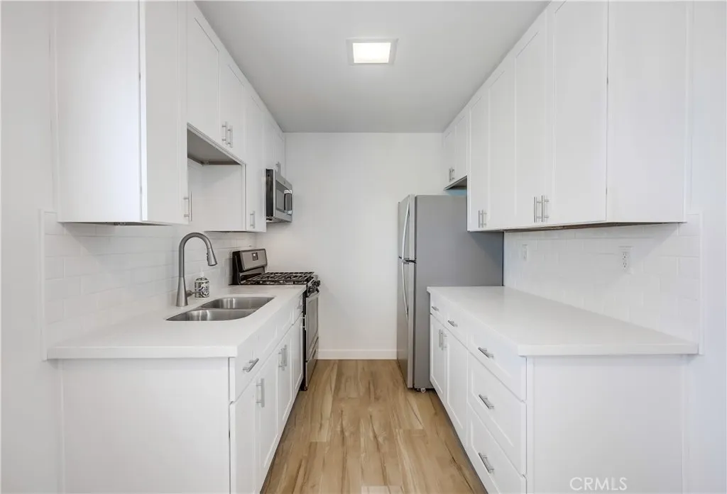 Superbly located, beautifully improved, spacious upper-level unit in the highly sought after North Beach area of iconic San Clemente. Ideally located just a short walk to trails down to the beach and close to downtown San Clemente with an abundance of vibrant nightlife venues, shopping, dining, and more! The fresh neutral interior, sleek luxury vinyl plank flooring throughout, and updated lighting fixtures set the stage for a perfect living space. The gorgeous, remodeled kitchen has been beautifully updated with timeless white shaker cabinetry, Quartz countertops, updated hardware and pulls, full subway tile backsplash, and newer stainless-steel appliances included gas stove, microwave, and refrigerator. The light and bright bedroom is a spacious oasis blessed with a huge private balcony overlooking this picturesque neighborhood perfect for relaxing in the amazing OC weather and taking advantage of the cool fragrant ocean breezes. The bedroom includes a closet and additional linen cupboard storage, as well as an updated en-suite bathroom with an updated vanity with Quartz sink, framed vanity mirror, and updated fixtures and hardware. The unit includes one covered carport space in the center, with one uncovered tandem parking space in the driveway. This building also includes a convenient community laundry room onsite. Landlord pays water, sewer, trash. Close to San Clemente Pier, North Beach, Metrolink, local parks, hiking, and biking trails, and easy 5 frwy access.