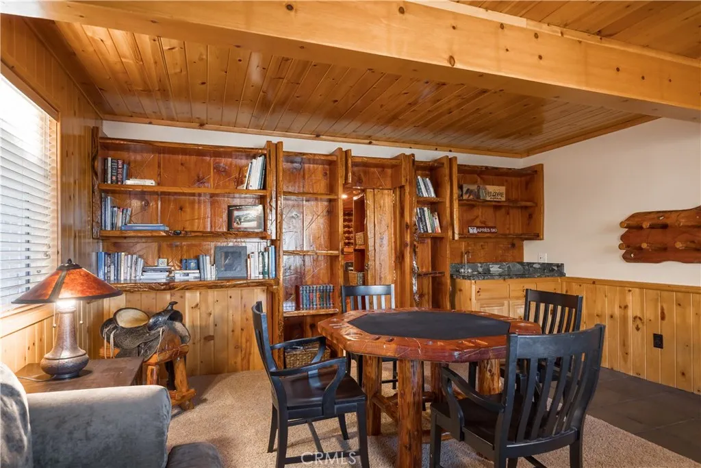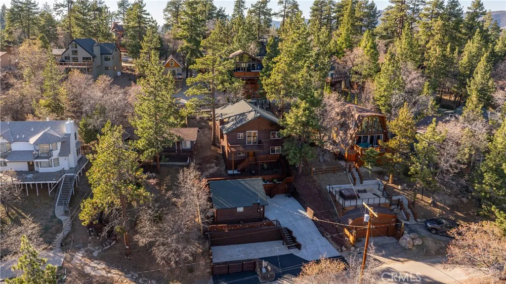 Views & Location!! Premier Moonridge location with wide-open views of the ski slopes and effortless access to year-round adventure. Just a short walk to Bear Mountain, the golf course, and the National Forest, this turnkey custom log-style cabin puts you in the heart of Big Bear’s most sought-after outdoor lifestyle. Designed for both comfort and connection, the home features vaulted T&G ceilings and an open-concept great room filled with natural light from its ideal southern exposure. The well-appointed kitchen is finished with striking Verde Marinace granite countertops and flows seamlessly into the main living space—perfect for gathering after a day on the slopes or trails. Australian cypress wood flooring & wainscotting add warmth and character throughout. Two spacious master suites, each with cedar lined walk-in closets, provide ideal separation for family or guests. Two additional bedrooms & a separate laundry offer comfort and room for the whole gang. A dedicated game room with a wet bar and built-in shelving creates a natural secondary hub for entertaining, while a hidden wine room adds a unique touch. Featuring a brand new driveway, there’s ample parking for up to seven vehicles to enhance convenience. This exceptionally maintained property offers strong rental potential and an inviting setting to create lasting memories in every season. This property provides the perfect opportunity to experience the very best of mountain living! Call us today to schedule a private tour!