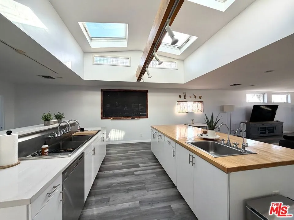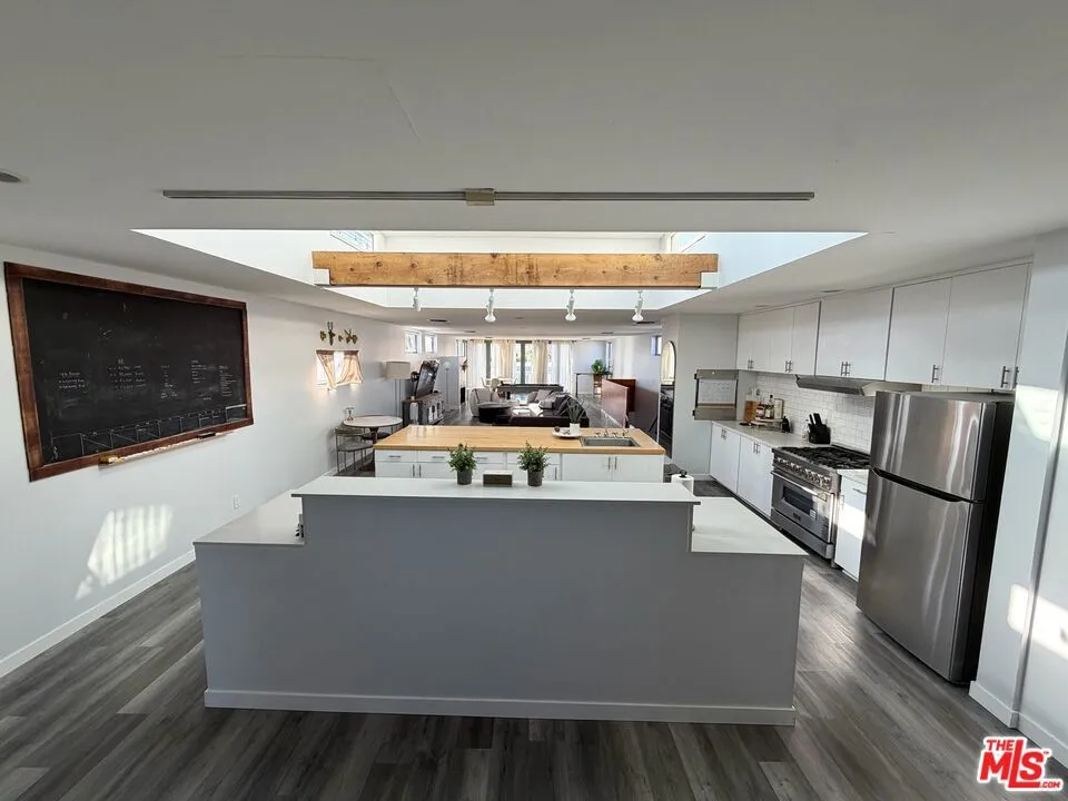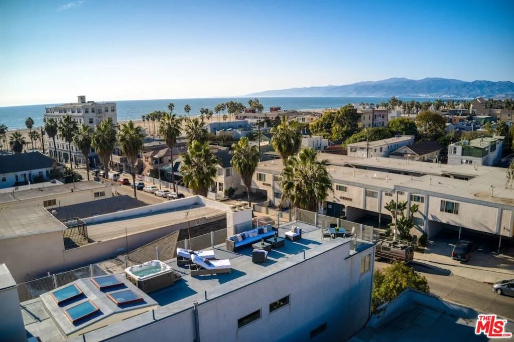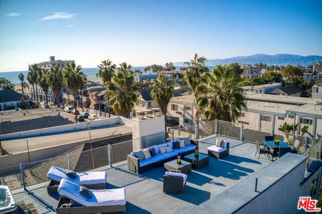 Soho Meets Venice Beach - One Block from the Sand! This expansive and airy 1 bedroom, 2 bath upper unit spans 2,400 sq. ft., with a versatile den that can serve as a second bedroom. The industrial chic design boasts high ceilings, skylights, floor to ceiling windows, polished concrete floors, a wide open kitchen, and a fireplace. A private staircase leads to a sprawling rooftop deck with a jacuzzi and lounge area, offering spectacular 360 degree panoramic views of the San Bernardino Mountains and the ocean, perfect for sunset watching. Additional features include a dumbwaiter elevator, gated 2 car parking, and a prime location near the beach and Main Street. Just a short walk to the trendy Abbot Kinney Blvd. and Rose Avenue shopping districts, with upscale boutiques, restaurants, and wine bars. This home is also near Silicon Beach, the Venice Canals, and top rated schools like Coeur d'Alene Elementary and Claire Fountain School. Experience the best of Venice Beach living in this unique and contemporary space! PS: Furnishings are not included in the lease; however, the current tenant is open to selling them separately.