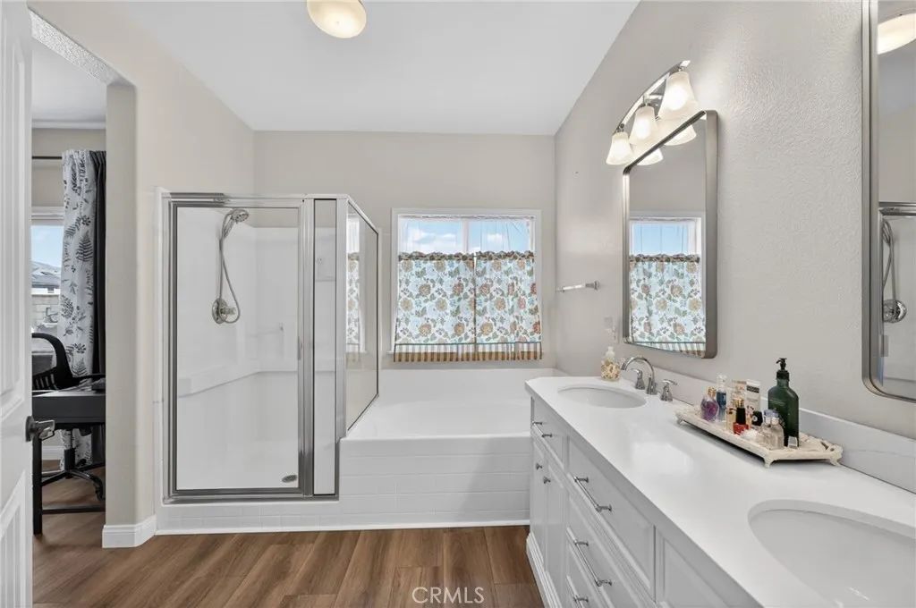 Welcome to this stunning single-story home in East Hemet — where comfort, functionality, and the good life all come together under one roof. With 4 bedrooms, 2 full baths, and 1,866 sq ft of open, flowing living space, this home was designed for real life. This includes a spacious primary suite with a walk-in closet, making day-to-day living effortless for families of any stage. The heart of the home opens beautifully to a family room built for connection — whether it's movie nights, homework sessions, or hosting the whole crew. The kitchen was upgraded with a large island, updated appliances and backsplash. Step outside and the backyard delivers: a private above-ground pool, sweeping mountain views, and a landscaped yard that's ready for every season. The oversized 3-car garage is a rare find and gives you the storage, workspace, or hobby room you've always wanted. Inside laundry, central heat and air, energy-efficient appliances, and a neighborhood park nearby check every practical box — and with no HOA and low property taxes, this home is as smart financially as it is beautiful to live in. Located near top local schools and convenient to shopping, dining, and the 74. This one is move-in ready and priced to sell.