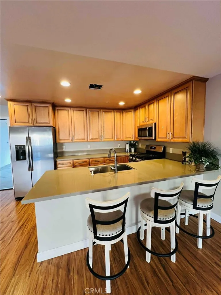 Welcome to this move-in ready condo located in a gated community in the city of Fontana. This home features 3 bedrooms and 2.5 bathrooms with an open-concept floor plan that provides comfortable living and easy flow for entertaining. The interior showcases fresh new paint throughout, creating a bright and welcoming feel. The kitchen includes stainless steel appliances, a walk-in pantry, and direct access to the attached two-car garage. The main level also offers a convenient half bathroom for guests. Upstairs, the primary suite features a private balcony, dual sinks, and a full en-suite bathroom. Two additional bedrooms and a separate laundry room complete the upper level. The gated community offers enjoyable outdoor amenities including a playground, park area, and designated spaces for barbecue gatherings. This property combines comfort, modern design, and a desirable location in Fontana with convenient access to local shopping, schools, and major freeways.
