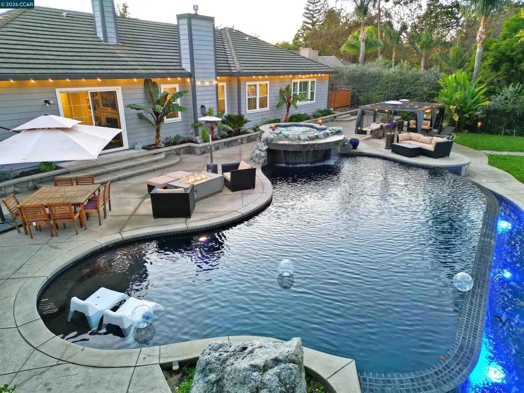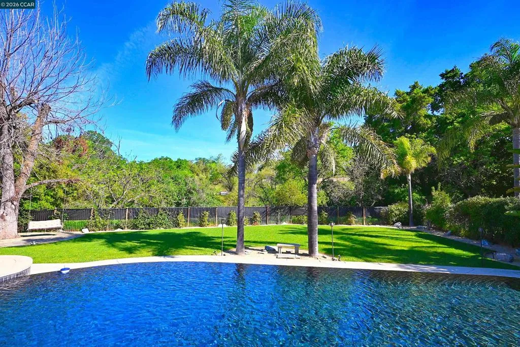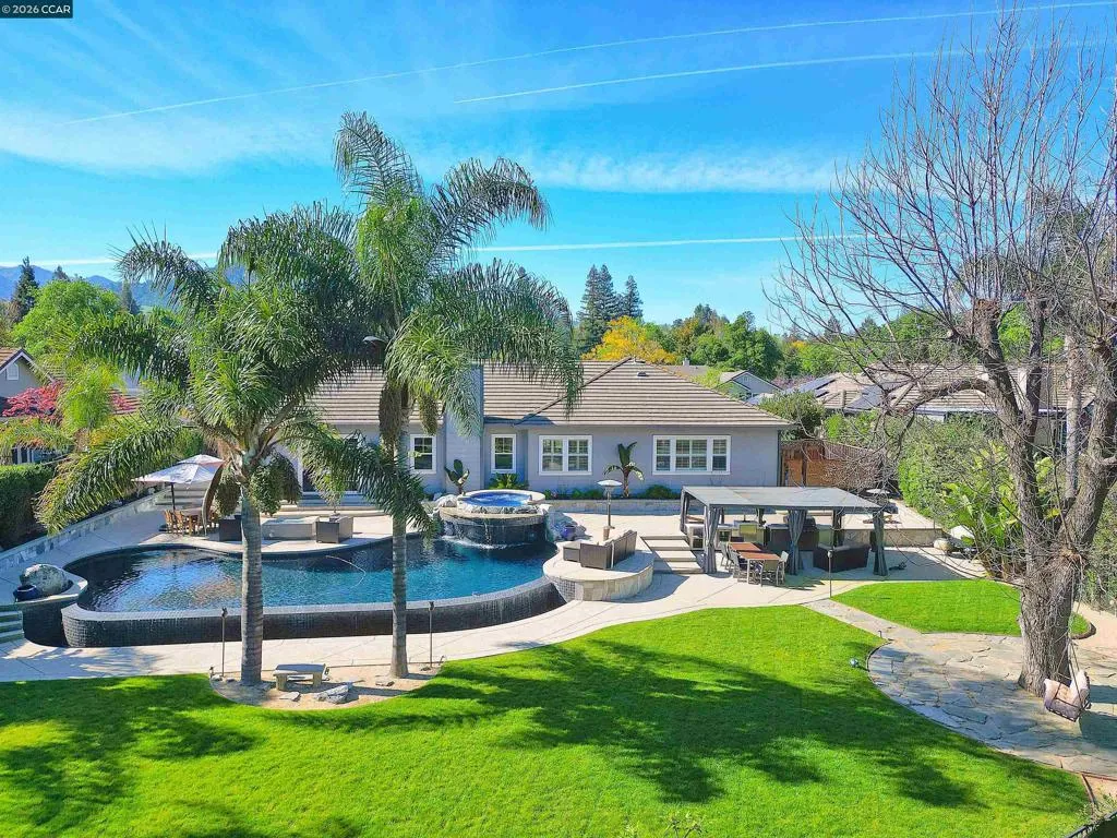 Once in a generation opportunity; spectacular 1-story resort, over 1/2 acre of breath-taking level grounds on an 8-home cul-de-sac just a short distance off YVR. Renowned pool builder’s personal custom designed estate-quality black bottom pool w/ a 46-ft infinity-edge waterfall, 12 ft elevated spa w/ spillway & custom lighting is absolutely stunning! Versatile 3060 sf ft 5 bd, 3 ba floor plan provides for multi-generational living w/ custom plantation shutters, crown molding, ceiling fans & tiled hardwood-like floors. Newer dshwshr & fridge. Sep liv & din rms, large granite island kit. opens to the spacious family rm, breakfast nook & rear garden w/ no rear neighbors! Huge primary suite w/ dual walk-in closets & beautiful garden views. Grand circular driveway accommodates side-by-side parking for 10+ vehicles, 3-car gar & dbl-gated RV parking. Recently added 20 x 12 louvered-roof outdoor kitchen pavilion can be screened in, or, completely open-air features Mont Alpi quartz counters, 6-burner 115,000 BTU grill, refrigerator & 3-tap beer dispenser. PV solar panels, renovated tropical gardens, expansive level lawns, palm trees, tree swing & post solar lighting add to the resort-like surroundings. Short walk to Lydia Park, Starbucks, and downtown Clayton! Hurry while still available!