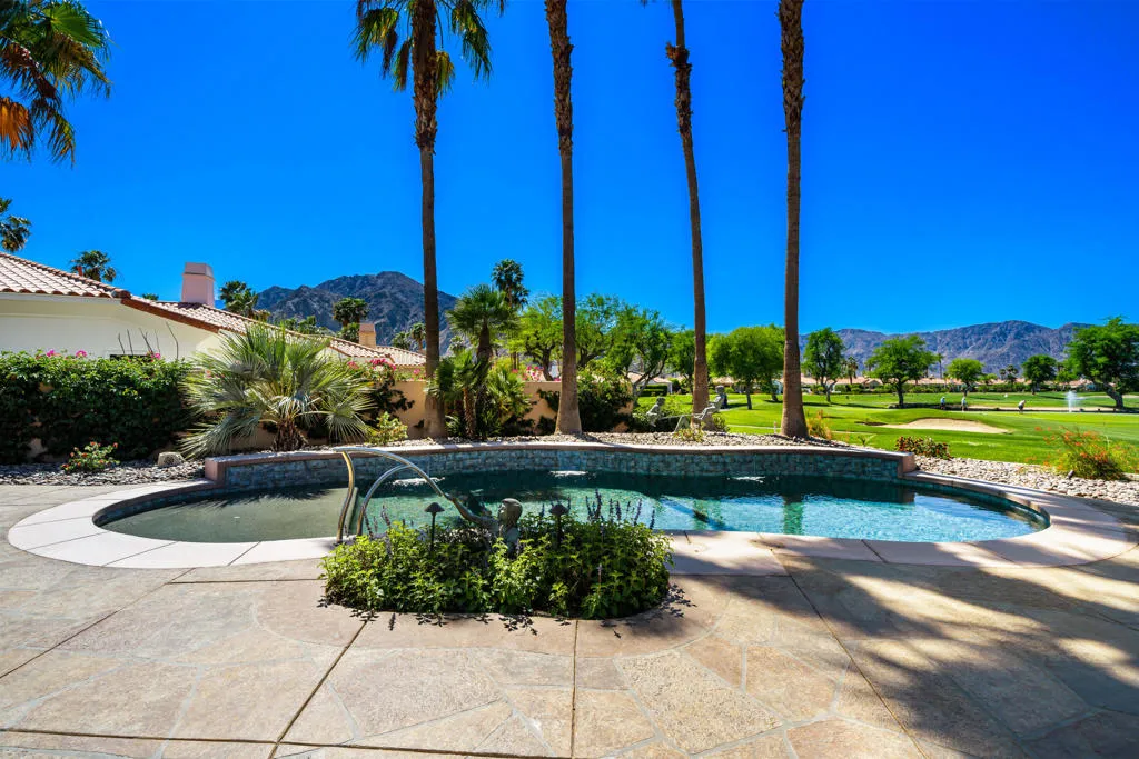 Perfectly positioned within The Citrus Club, this beautifully upgraded Trovita 2 residence offers refined desert living on an oversized 13,000+ square foot premium lot. Enjoy your morning coffee on your expansive patio with sweeping double fairway views and panoramic vistas of the Santa Rosa Mountains. At the heart of the home, a custom-renovated kitchen with stainless steel appliances and a walk-in pantry opens to the family room, while a wall of glass sliders invites the outdoors in. Designed with comfort and flexibility in mind, each bedroom offers its own en suite bath, ideal for visiting guests. The third guest bedroom is currently configured as an office with a built-in workspace. The property has been meticulously maintained and boasts remote controlled window coverings and exterior retractable awnings. The formal living and dining area feature a custom built-in, temperature-controlled wine cabinet. Multiple seating and gathering areas create the perfect environment for hosting friends or simply enjoying the peaceful desert surroundings. Enjoy your private gazebo in the afternoons or take in the sunset by your firepit in the evenings overlooking both the 13th and 14th fairways of the Pete Dye designed golf course. A rare opportunity to own one of the most desirable view properties in The Citrus. Close proximity to the Desert International Horse Park, SilverRock Golf Course, Old Town La Quinta, El Dorado and Empire Polo, Thermal Race Track, Thermal Airport and more. HOA inc cable/wifi, front landscaping, 24/7 guard gate.