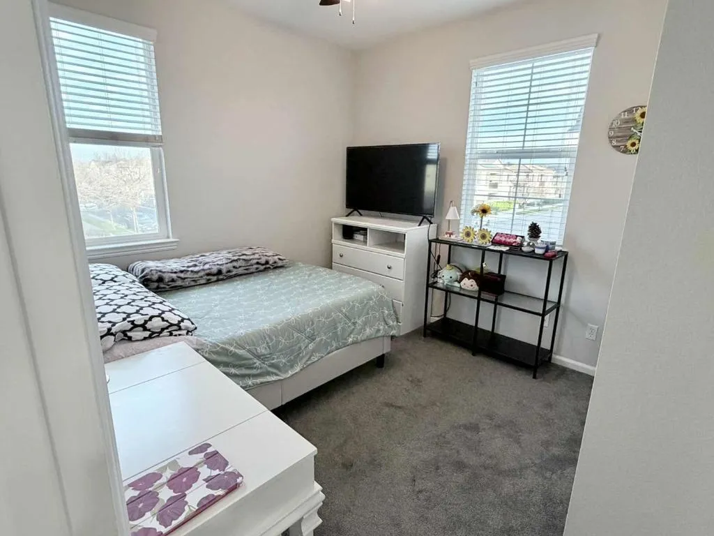 Pride of ownership!!! A 1872 sq ft 3 bedroom 3 bathroom designer home seated on a corner premium lot at the Highly desirable West Park Area! Huge master bedroom with own master bathroom and a walk-in closet, 1 more bedroom / 1 bathroom and a bonus loft located upstairs. 1 bedroom 1 bath downstairs pefect as a guest room or a room for elderly family members. Detached 2 car garage with a 240v electric vehicle hook up. Decent size backyard for barbeques and family gatherings in between garage and the back entrance of the main house. Spectacular OWNED SOLAR that will give HUGE savings on your power bills! Open floorplan with modern style spacious kitchen, granite counter top and stainless steel appliances! Great Room pre-wired for surround sound. New interior / exterior house painting, recessed lightings, double pane windows and central A/C. Minutes away from the newly built Costco and other commercial stores. Walking distance to schools, parks and more!!!