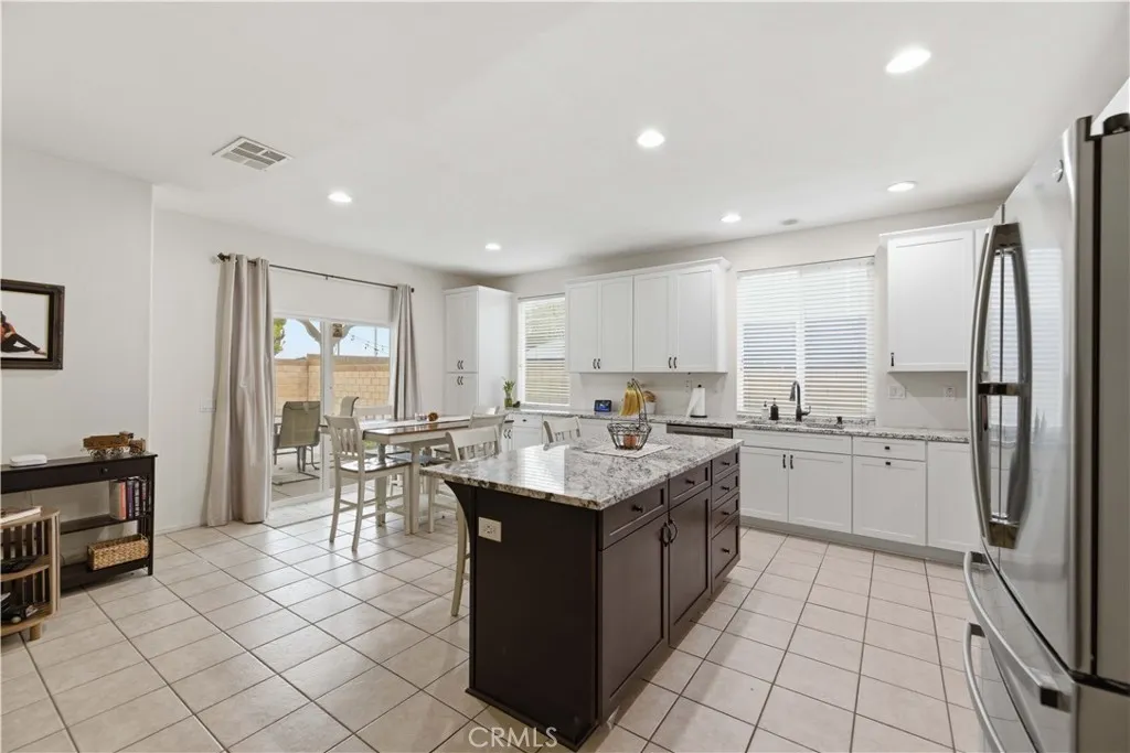 Welcome home to this spacious 2,815 sq. ft. residence offering 4 bedrooms and 3 bathrooms. A beautiful custom front door with a stained-glass window welcomes you into the tiled entryway, where a generously sized, carpeted front living room provides the perfect setting for family gatherings or quiet evenings in. A guest bathroom is conveniently located downstairs for added comfort and accessibility. The heart of the home is the remodeled kitchen, thoughtfully updated with granite countertops, crisp white cabinetry, a center island, black faucet, and modern black hardware. Extended countertop space and added pantry storage enhance both style and function. The kitchen features tile flooring, which continues seamlessly into the dining area and the open family room. The family room offers a warm and inviting atmosphere with its cozy fireplace. Just off this space is a separate bonus room, currently used as a gym, but easily converted into a 5th bedroom, office, or playroom depending on your needs. Upstairs, the oversized primary bedroom provides a true retreat. It features two walk-in closets that lead into the spacious primary bathroom complete with a soaking tub and glass-enclosed shower. Three additional upstairs bedrooms offer generous space, including one with its own private alcove or sitting area--perfect for reading, studying, or relaxing. All bedrooms are equipped with ceiling fans, and the laundry room is conveniently located upstairs. The backyard is expansive and professionally landscaped, featuring a covered patio, two grass areas, and attractive concrete curbing--ideal for entertaining, play, or peaceful outdoor living. The 3-car garage includes a pull-through bay that opens to the backyard, where you'll find concrete parking, RV access, and RV gates along the side of the home. This home is also commuter-friendly, offering quick access to major routes, and is close to schools, shopping, and everyday conveniences.