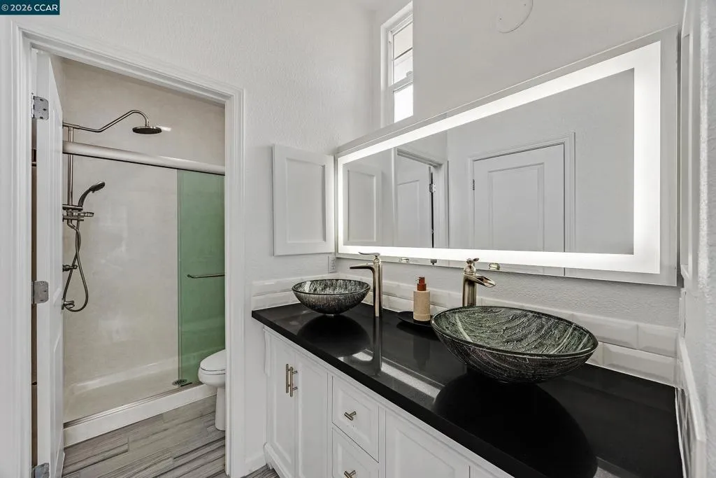 2809 Jefferson Ln in Concord is a beautifully updated and move-in ready townhome located in the desirable Willow Walk at Parkside community. This rarely available end unit offers 4 bedrooms, 2.5 bathrooms, and 1,645 square feet of expansive living space, tucked away in the rear of the community for a private and serene setting. Filled with an abundance of natural light, the home features stunning hardwood floors, fresh paint throughout, recessed lighting, and new carpet in all bedrooms. The remodeled kitchen showcases custom cabinetry, stainless steel appliances, a farmhouse sink, gas range, granite countertops, herringbone tile backsplash, breakfast bar, and generous cabinet space. The expansive living room offers a cozy gas fireplace and opens to a beautiful balcony, perfect for enjoying your morning coffee. All bathrooms have been tastefully remodeled, while the extremely spacious bedrooms provide comfort and flexibility. The massive primary suite features a spa-like ensuite with dual sinks, a large shower stall, and a generous walk-in closet. Additional highlights include an attached 2 car garage with an electric vehicle charger, new water heater, and in-unit washer and dryer. Ideally located near BART and downtown Todos Santos area, this home offers convenience and charm!