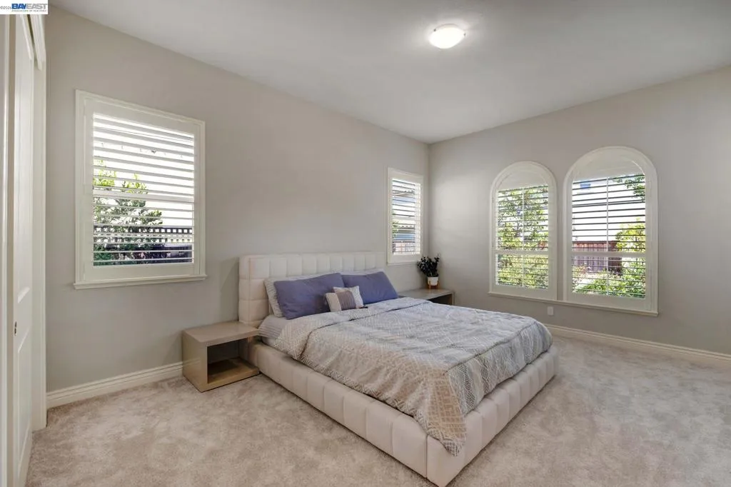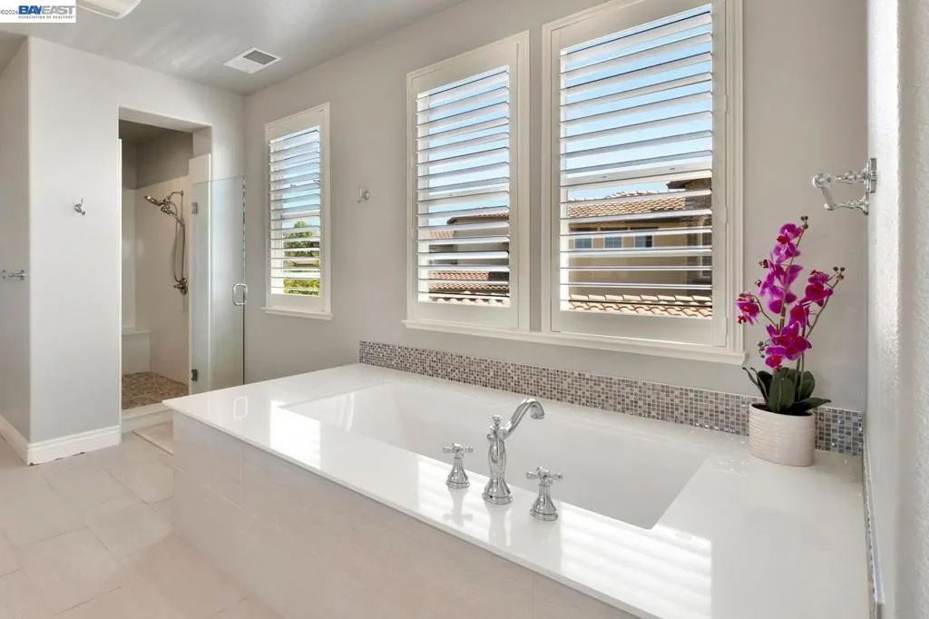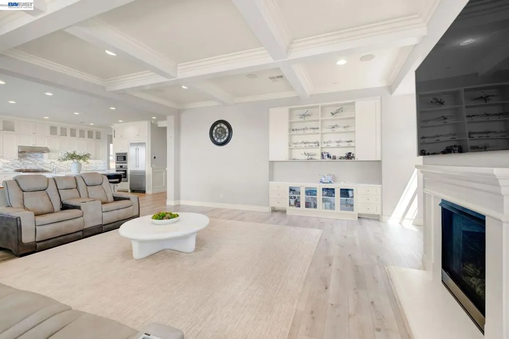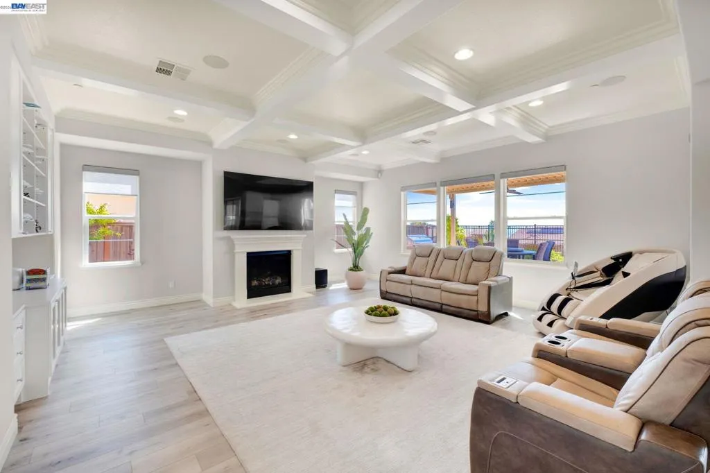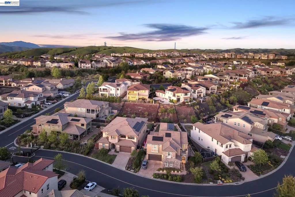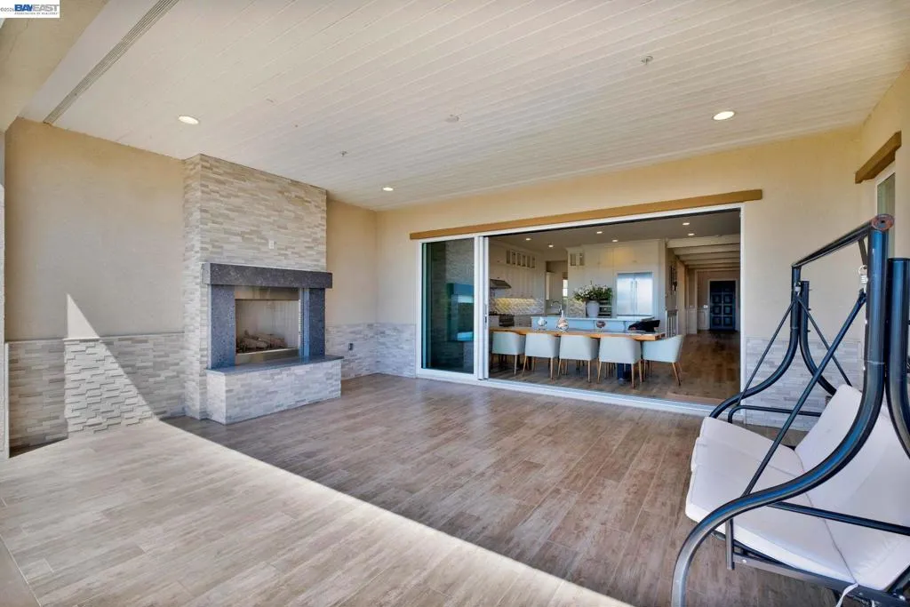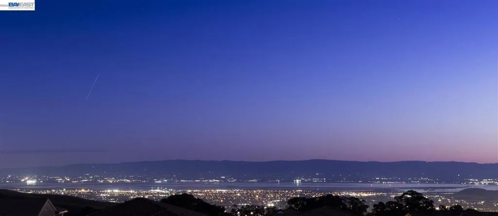 Exquisite home in prestigious Stonebrae Golf Club community, one of the most idyllic East Bay locations with spectacular views from San Francisco to South Bay. This luxury residence offers 5 bedrooms plus office, bonus room and 4.5 bathrooms, including a primary suite downstairs. The home boasts coffered ceilings, crown molding, and wainscoting. The formal dining room provides the ideal space for memorable dinners, while the open-concept kitchen and family room are ideal for gatherings. The gourmet kitchen is equipped with high-end appliances, a walk-in pantry, and a center island. A fully collapsible sliding door connects the kitchen to the outdoor California room with fireplace and STUNNING BAY VIEWS. Upstairs, the expansive master suite offers a private balcony that provides breathtaking vistas and features an expansive walk-in closet, dual vanities, oversized tub, and a sit-down vanity area. Additional highlights include hardwood flooring, upgraded sound system in the great room, and laundry room with cabinets and a sink. The private backyard offers a covered patio with built-in BBQ, stamped concrete walkway, a putting green & a bocce court. The guarded community has 24-hour security and optional country club memberships with access to a gym, golf, tennis courts and pool.