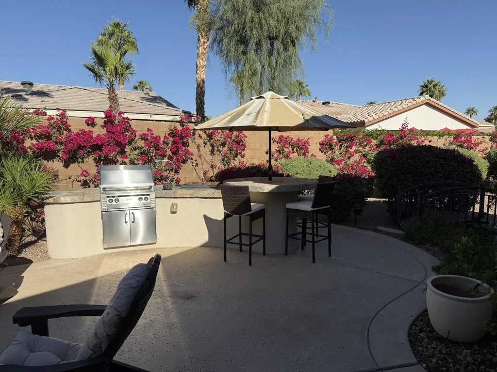 RENTED 12-1-2025 Thru 3-31-2026. RENTED 11-1-2026 thru 3-31-2027.. Trilogy in La Quinta is a 55 and older community. This property is available for 3 months or more in 2026.This property is a Caspian floor plan. 2 bedroom Master has a king size bed. Guest has a queen. Plus an office ... Home shows like a model has 1775 sq ft. open floor plan. Private backyard on a corner lot. Mountain views, fire pit plus a spa for those evening to relax and enjoy the sunset.