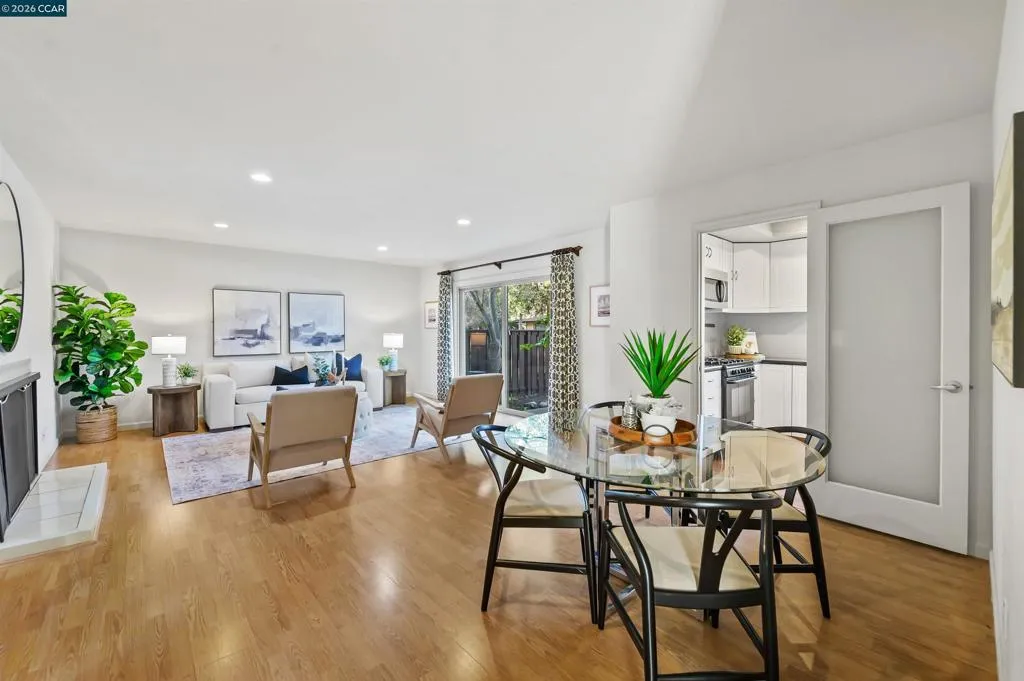 Tucked away in a private court setting, this exceptional townhome offers the perfect blend of comfort, style, and convenience. With 3 spacious bedrooms, 2.5 baths, and a 2-car garage providing plenty of room for everyone. Inside, beautiful wood laminate flooring flows throughout, complemented by upgraded dual-pane windows that invite in natural light while enhancing energy efficiency. The thoughtfully updated kitchen offers granite countertops, a gas cooktop-oven, microwave-oven, and modern finishes—plus the added convenience of a refrigerator, washer, and dryer included. The expansive family room is designed for both relaxing and entertaining, featuring a cozy gas log fireplace and an adjacent dining area ideal for gatherings. Upstairs, the generous primary suite feels like a private retreat, complete with its own fireplace, skylight, and two closets outfitted with custom built-in organizers. The two secondary bedrooms are equally well-appointed with built-in closet systems for effortless organization. Enjoy resort-style living with community amenities that include a sparkling pool, tennis courts, a clubhouse, and scenic walking trails. Located just moments from Bancroft Village Shopping Center for convenient shopping and dining, this home also offers a commuter’s dream location