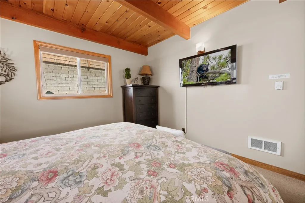 Charming Cabin in a Prime Location! Located near dining, shopping, and year-round activities, this inviting cabin blends rustic charm with thoughtful updates. Inside, you’ll find a warm neutral color palette, dual-pane windows, wood trim, and blinds. The kitchen features beautiful hickory cabinets with self-closing drawers, black appliances, butcher block counters, mosaic tile backsplash, farmhouse sink, and a dining area. The living room boasts vaulted open-beam tongue-and-groove ceilings, a stone fireplace with efficient wood-burning insert, and durable bamboo flooring, which stands up to snowy boots well. The bathroom is beautifully updated with ceramic tile, a stone countertop, and set up for heated floors. Two main-level bedrooms showcase tongue-and-groove ceilings, mirrored closets, individual wall heaters, and carpet. The loft-style third bedroom offers built-in storage, large windows, and a ceiling fan. The separate garage includes a washer & dryer area and plenty of storage. Outside, the large lot provides ample parking, mature trees, a fenced backyard, and a spa for relaxing after a day of mountain adventures. This cabin is the perfect blend of mountain character and modern comfort—ready for your weekend getaway or full-time retreat!