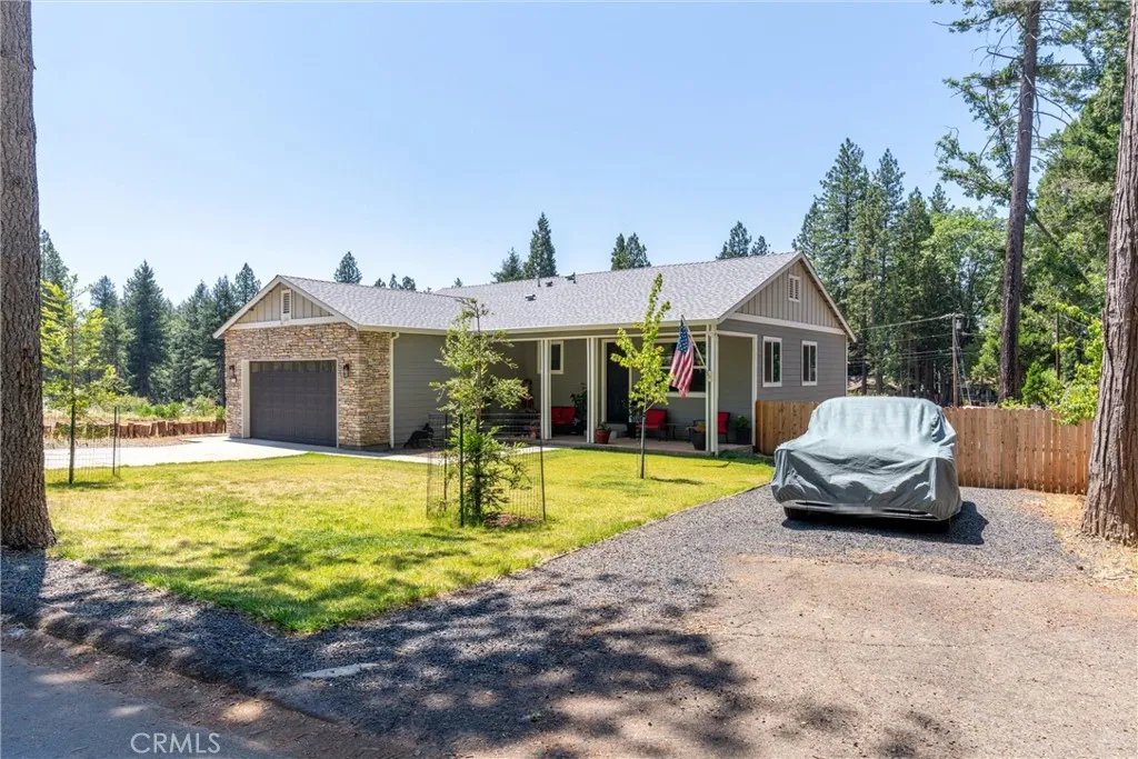 Discover this beautifully built 2023 home in the peaceful mountain community of Magalia. Offering 3 bedrooms and 2 bathrooms, this modern home features an inviting open floor plan designed for comfort and style. The kitchen shines with granite countertops, stainless Samsung appliances, Kohler fixtures, and a spacious island, flowing into a bright living room complete with a cozy electric fireplace. The living room and primary suite are wired for surround sound, with ethernet in every bedroom and a Wi-Fi enabled thermostat for modern convenience. The finished 2-car garage includes an EV charging connection and quiet side-mount opener. Enjoy energy efficiency with solar and two backup battery systems for added peace of mind. Step outside to a fully fenced backyard retreat featuring a new above-ground pool, custom firepit area, and large gazebo—perfect for relaxing or entertaining. The property also offers front and rear lawns, newly planted evergreens, and many varieties of fruit trees. Located near Paradise Lake, shopping, and dining, with access to Paradise Pines HOA amenities including clubhouse, pool, spa, and tennis courts. A true turnkey mountain retreat!