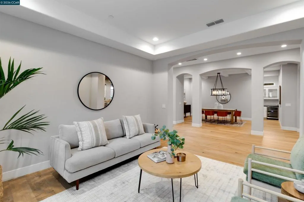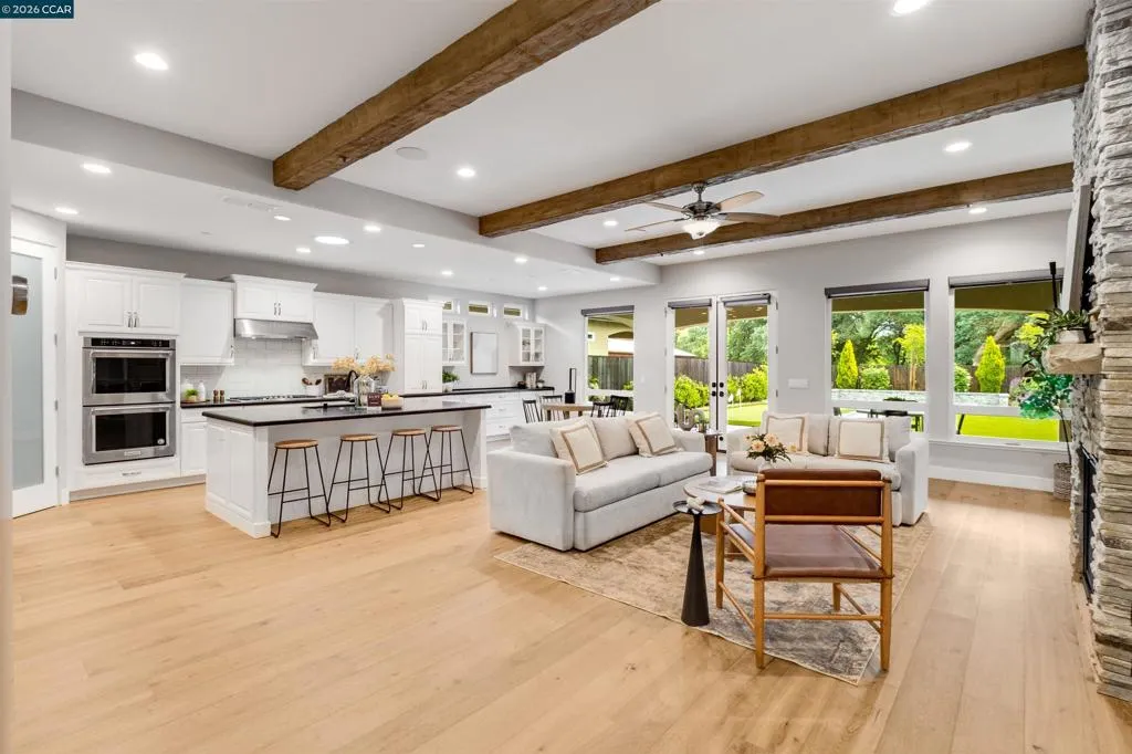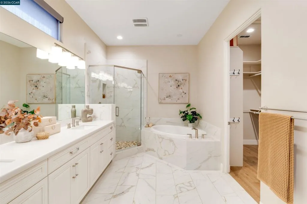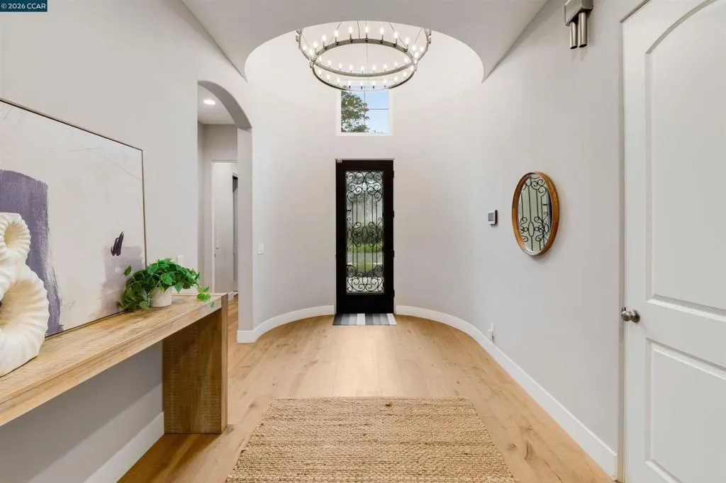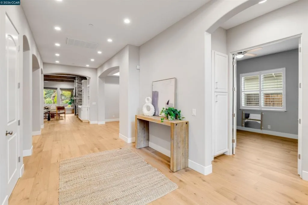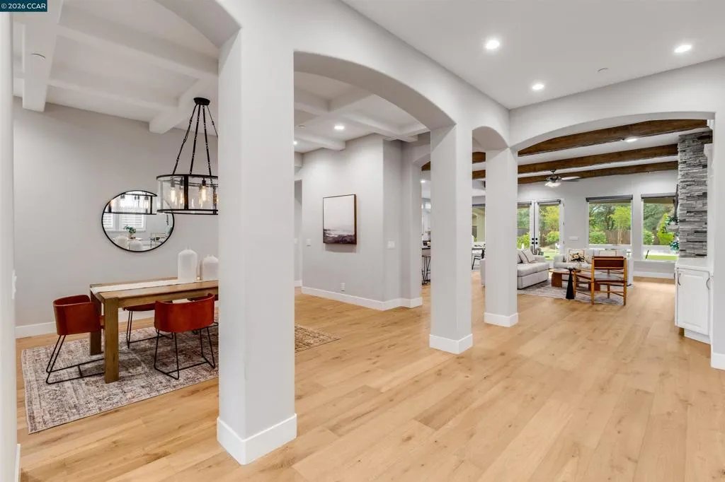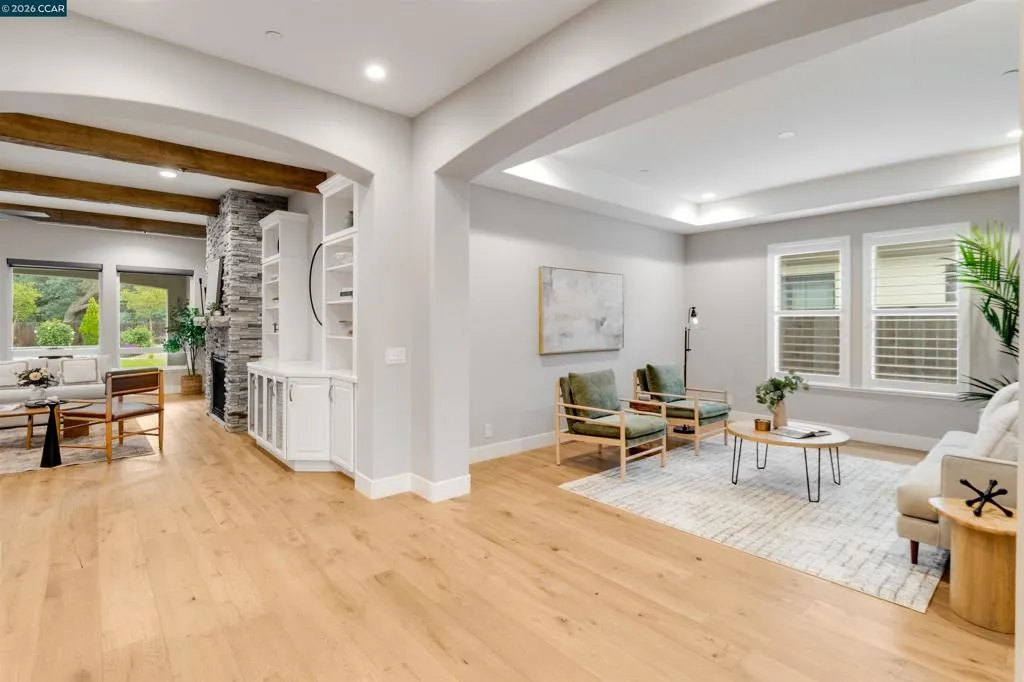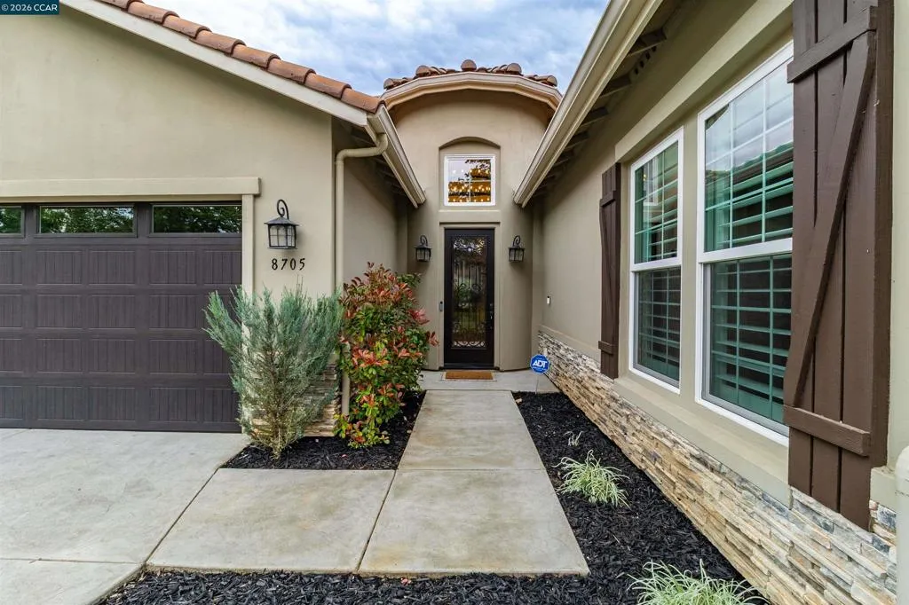 Welcome to 8705 Morgan Creek Lane, a refined residence in the prestigious Morgan Creek Golf Course community. A grand entry with soaring ceilings and a statement chandelier establishes an immediate sense of scale and sophistication. Inside, wide-plank French oak flooring leads into an expansive great room where custom faux wood beams, an imperfect smooth wall finish, and a dramatic floor-to-ceiling stone fireplace create warmth, texture, and architectural presence. The kitchen is beautifully appointed and highly functional, featuring extended custom cabinetry, a premium Thermador range, oversized island, and seamless flow into the main living space - designed for everyday living and elevated entertaining. High-end shutters and designer finishes carry throughout, while both the primary and guest bathrooms offer heated tile floors, adding a meaningful layer of comfort. The backyard is a true extension of the home, thoughtfully designed with a custom masonry wall, putting green, expanded hardscape, integrated landscape lighting, and outdoor surround sound - creating an ideal setting for daytime enjoyment and evening ambiance. Extensively upgraded and turnkey, this home offers a rare blend of design, comfort, and effortless living in one of Roseville’s most desirable communities.