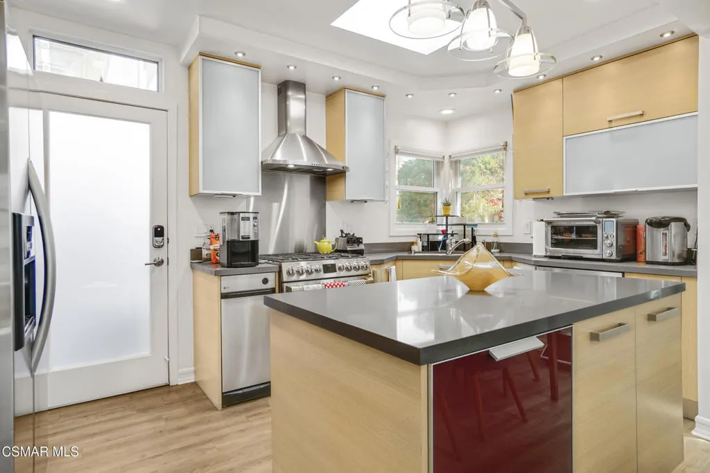 Tucked into one of Mar Vista's most desirable pockets, this beautifully updated 2-story home can be available furnished or unfurnished. The front yard features beautiful drought-tolerant landscaping, giving this beach home fabulous curb appeal. As soon as you step inside, you will be welcomed by an open-concept floor plan starting off with a well-lit sitting room that flows right into a spacious dining area and a sleek, updated kitchen with modern Italian cabinetry, gorgeous natural stone countertops, and newer appliances. Downstairs, you have two large bedrooms and a full bath that has been completely updated. One of the rooms downstairs is set up as a theater room with a huge screen and a projector ready to play your favorite movie; just bring in your favorite lounge chairs. This could be used as another bedroom should you need the space. The expansive living room, complete with a cozy fireplace, opens seamlessly through French doors to a large deck and a lush private retreat of a backyard with vibrant greenery, and a spa ideal for effortless indoor-outdoor living and entertaining.Upstairs, the luxurious primary suite is a true retreat with it's own fireplace, a generous walk-in closet and so much space to really relax. There is a dedicated office area with a great sun deck to enjoy in between meetings. The recently remodeled spa-like bathroom with a walk-in shower and a separate soaking tub will certainly wow you! We can't forget to mention the extra loft-style room that would be perfect for a yoga or workout room. Filled with natural light and thoughtful upgrades throughout, this home has it all, including solar panels, which add even more value, keeping your electric bill to a minimum. This home is perfectly positioned in the prime Silicon Beach area, just moments from top-rated restaurants, local shops, Venice, and some of the best beaches.
