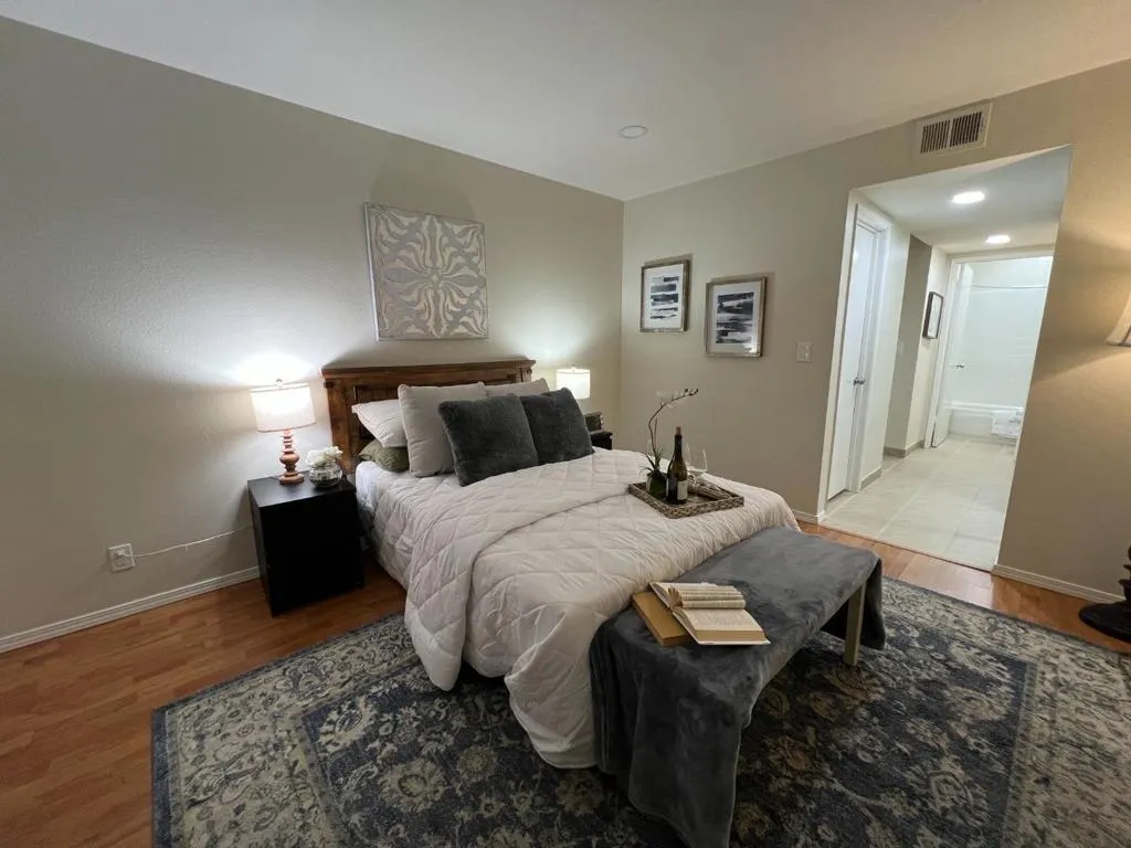 Welcome to this charming 1-bedroom, 1-bathroom condo located in a prime, highly convenient location. Situated just minutes from major freeways, light rail access, and a variety of shopping centers, this home offers both comfort and accessibility. This complex features a community center, a gym, and a swimming pool/spa. The unit is freshly painted throughout. The living room and bedroom are enhanced with newly installed recessed lighting, adding warmth and style to the space. The unit comes with one designated covered parking space and one open parking permit. Community laundry room conveniently located nearby, steps away from the building. Perfect for first-time buyers, investors, or anyone seeking low-maintenance living in a central location, this condo combines practicality with thoughtful upgrades. Don't miss this opportunity to own a move-in-ready home in a sought-after area!