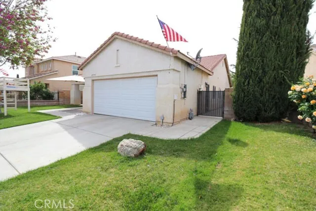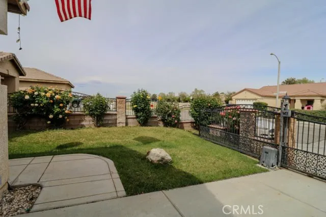 Welcome to this super sharp, beautifully upgraded 2012-built single-story home located in a great West Lancaster neighborhood! Featuring a bright and open floorplan, this home offers the perfect blend of comfortable everyday living and great entertaining space. The open and bright kitchen features granite surfaces on the massive island and counters creating a modern, open stylish space that flows seamlessly into the main living areas. You will love the extended counter and cabinets for a great coffee prep area, or just for extra kitchen space. Recent upgrades include new shower, vanity and flooring in the guest bathroom. Currently set up as a 3 bedroom with extra play room, or you could have a 4th bedroom instead. Outside, the improvements really shine -- the large covered patio spans the back of the home, with lots of space for playsets, gardening or whatever you want! This home also features full block wall fencing that you will love, and the fully fenced and gated front yard and driveway provide privacy and an enclosed area for kids and/or pets! The home is also energy efficient and future-ready with a money saving solar power system. This is the kind of home that feels cared for the moment you arrive -- clean, upgraded, energy-efficient, and ready for its next owner to enjoy!